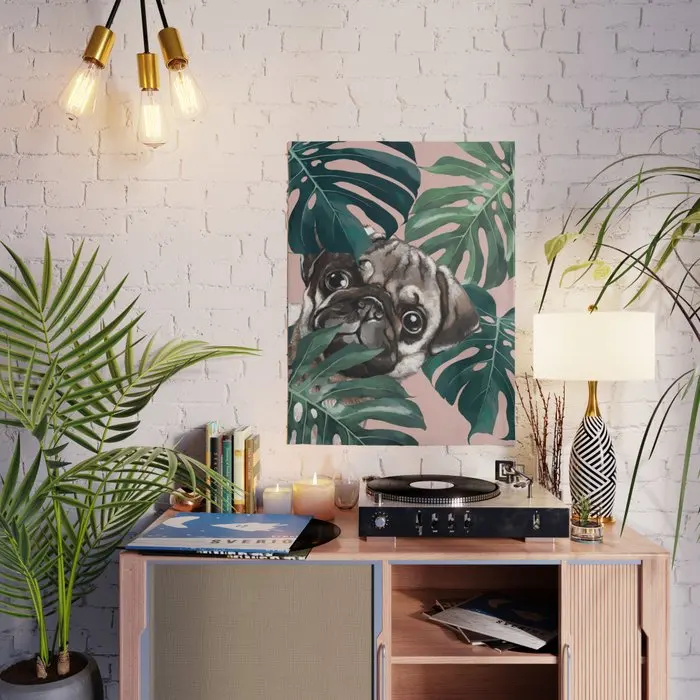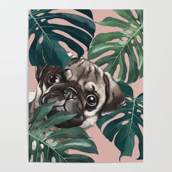 Домашний декор мопса HD печатные картины настенные художественные животные Модульная картина ботанический холст Monstera лист постер для прикроватного фона