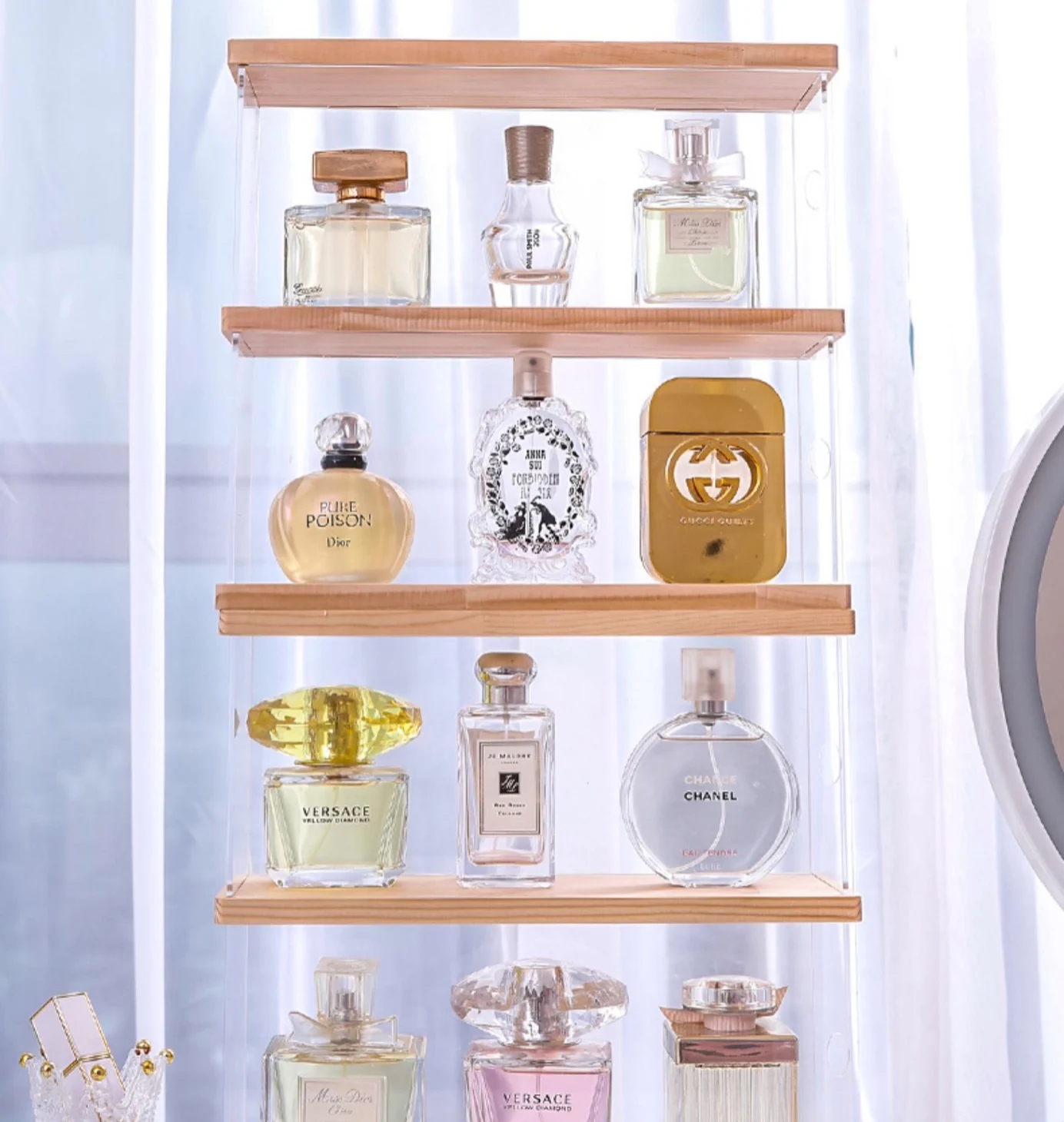 Этот органайзер для парфюма дешево сделан. Части на кусочки держат падение. Это не так, как описано на фотографиях. Дешево сделано. Пожалуйста, не тратьте деньги на этот товар. Я хочу вернуть свои деньги за этот разрыв.