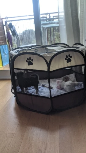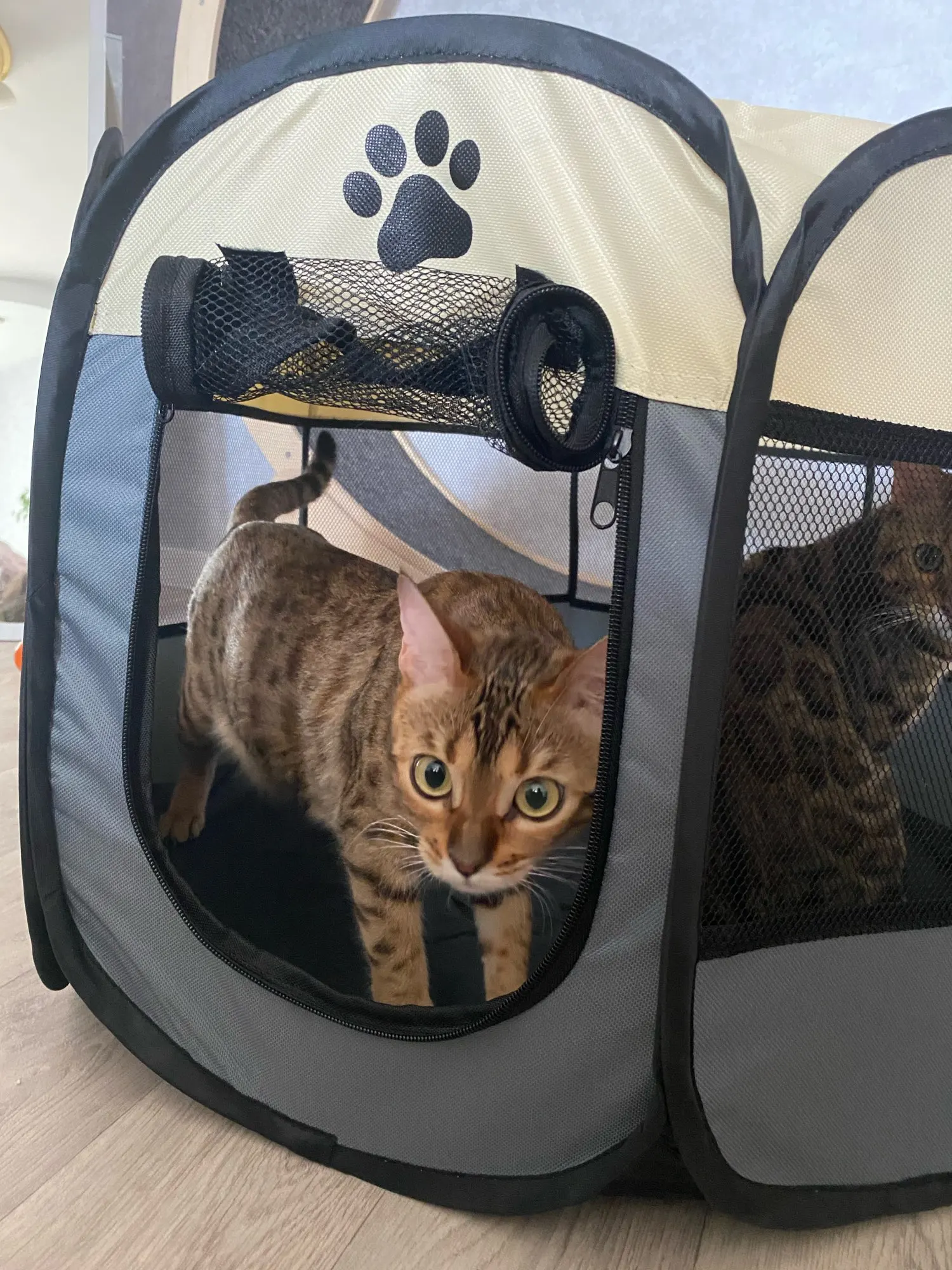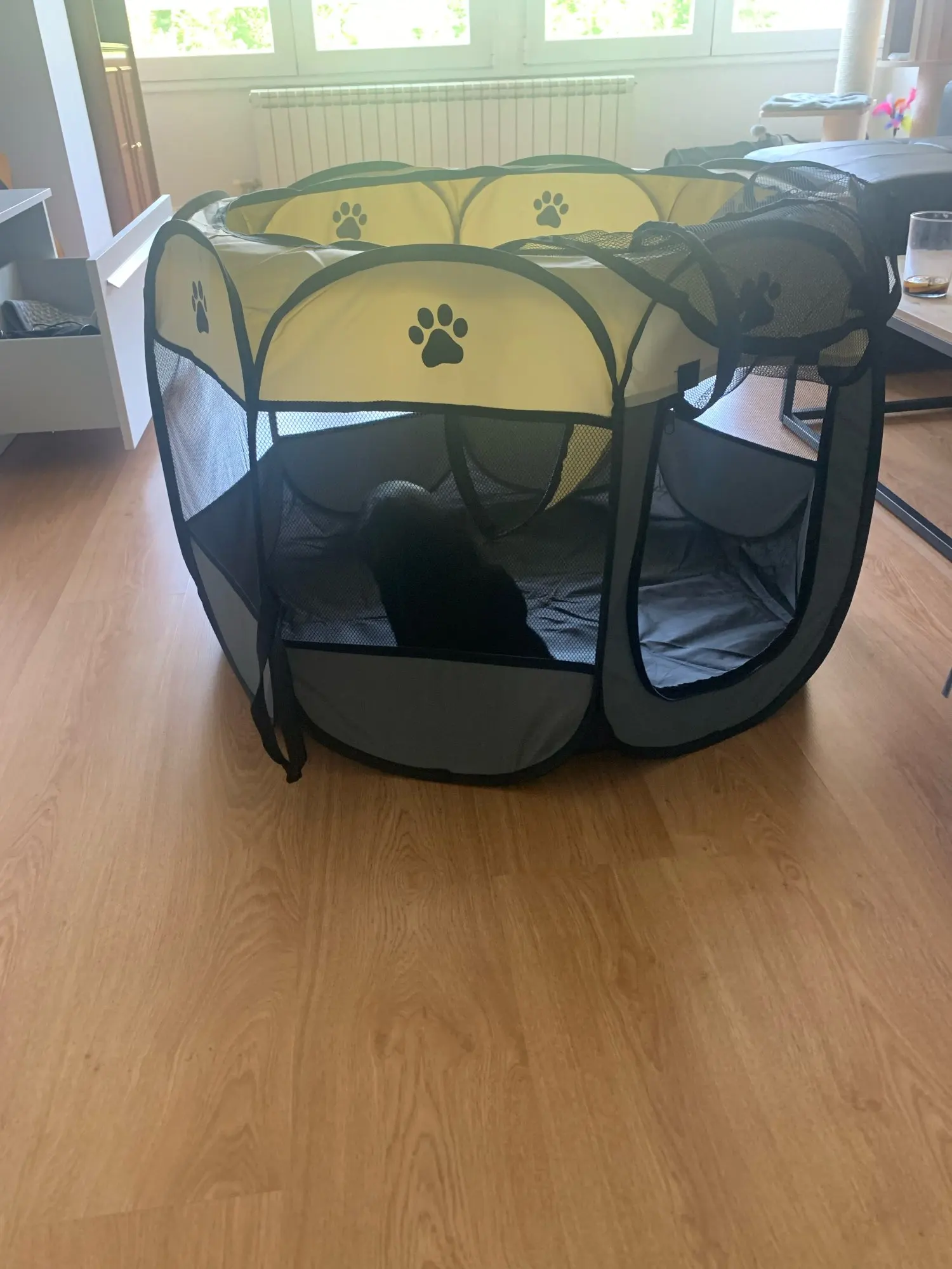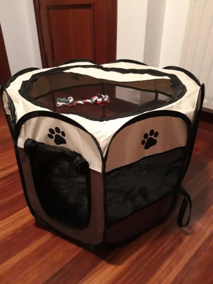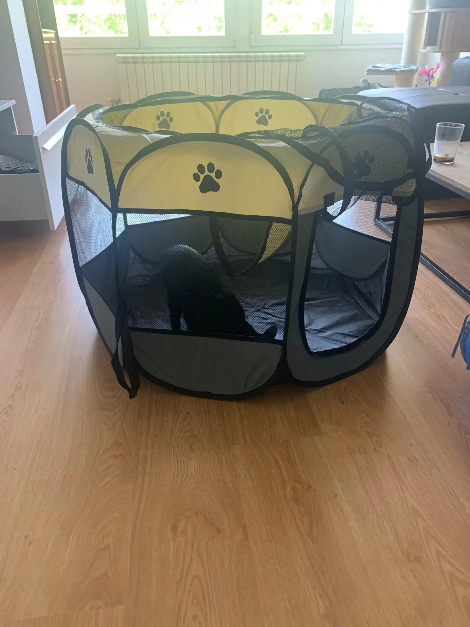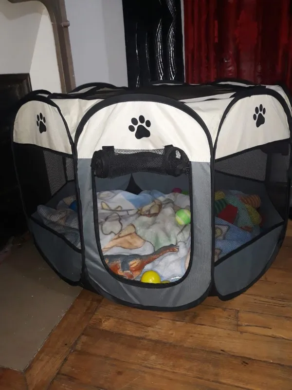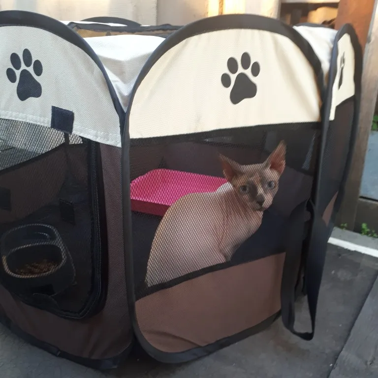 Товар пришёл быстро. Все застежки работают. Очень легкая и в сложенном состоянии практически не занимает места. Отличный вольер за хорошую цену
