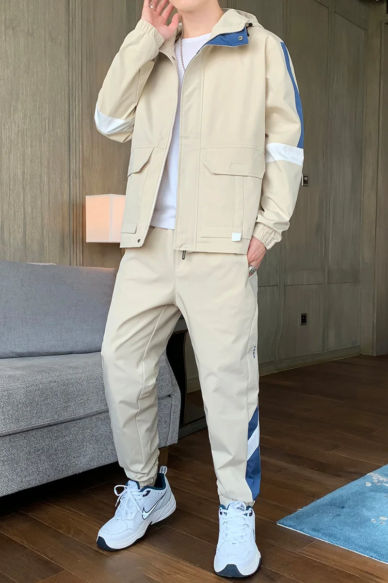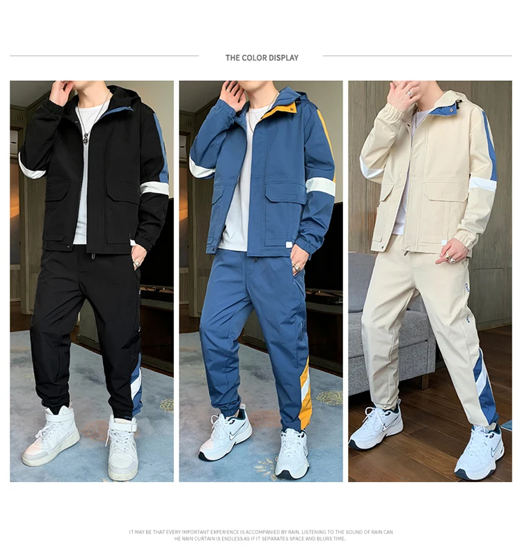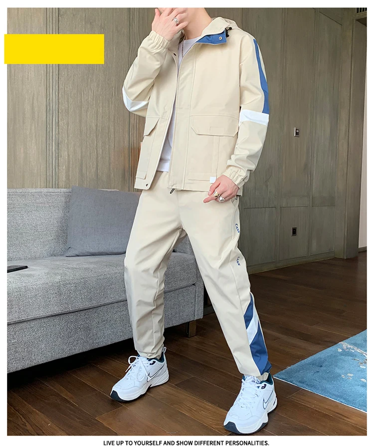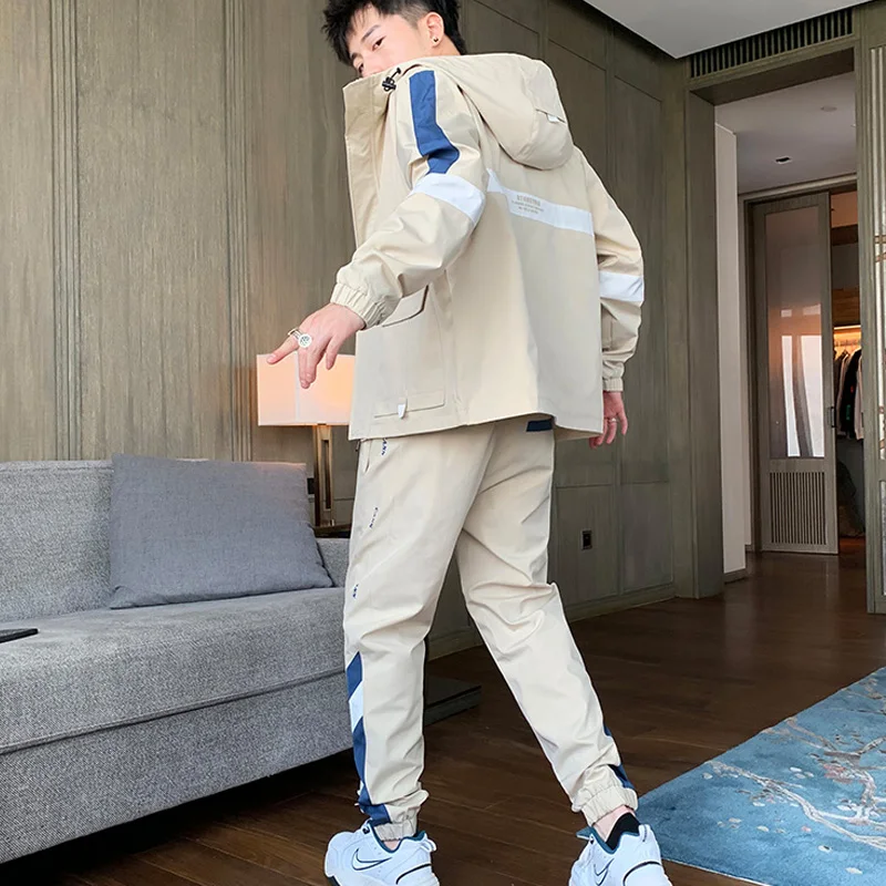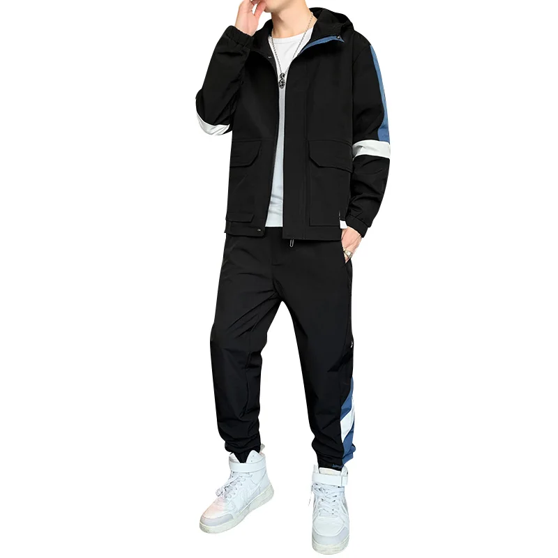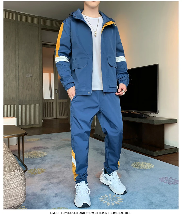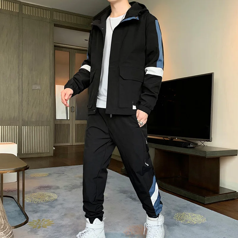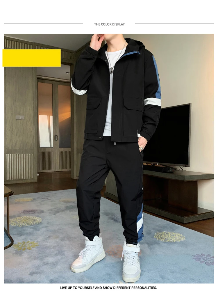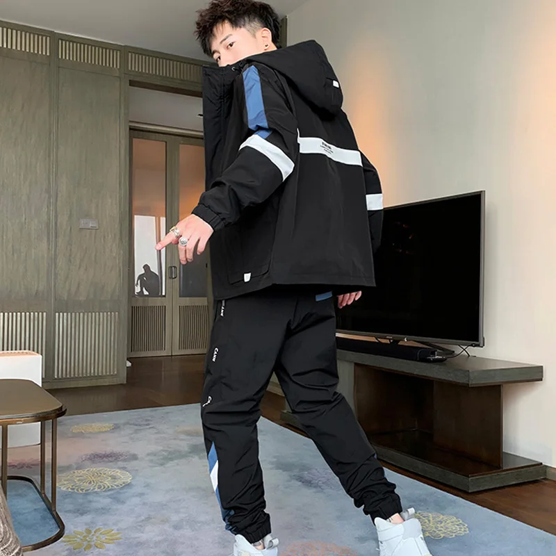 Спортивный костюм мужской из двух предметов, свободная куртка с капюшоном и брюки, уличная одежда в стиле хип-хоп, рабочая одежда с большими карманами