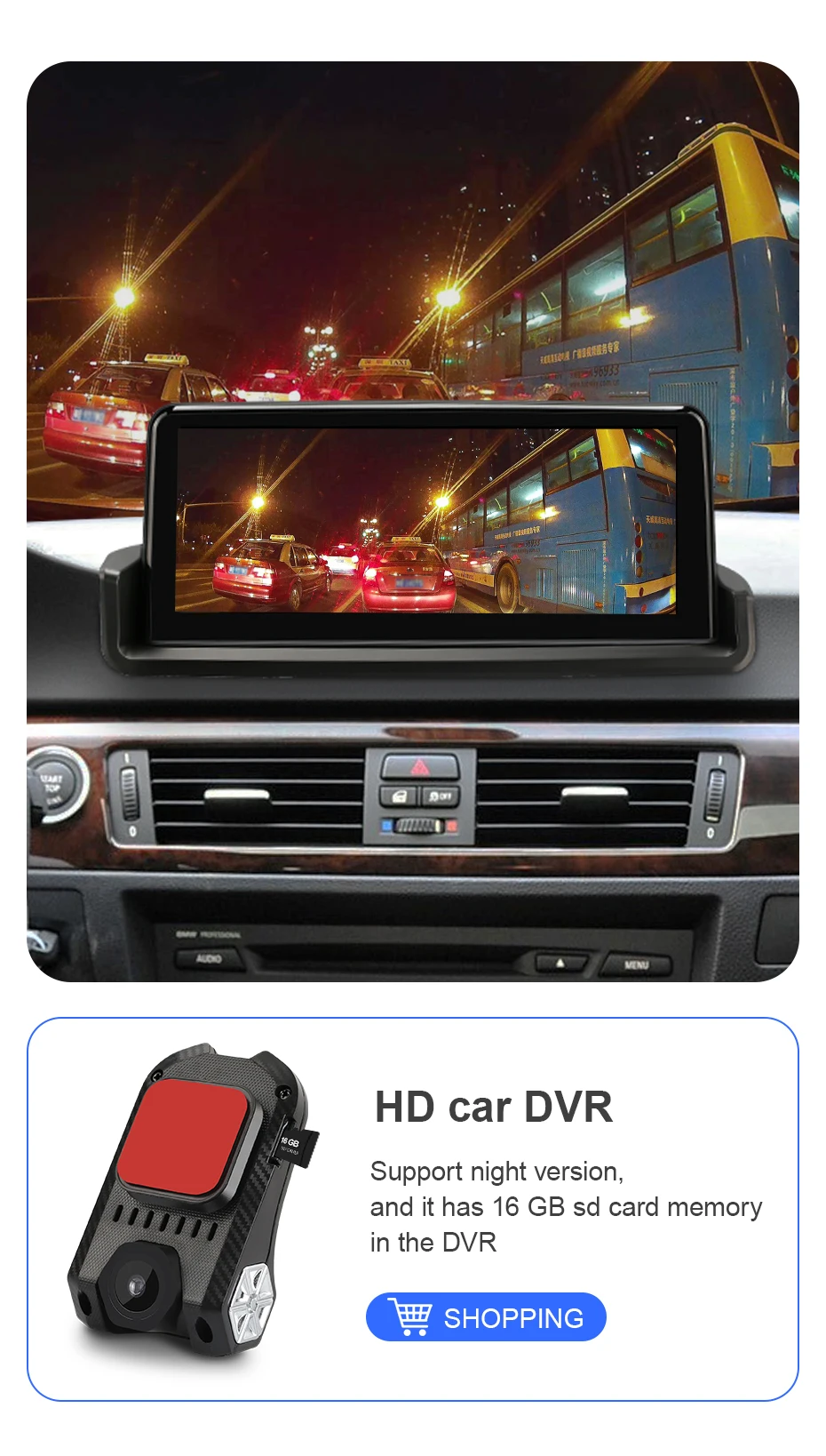 >>> У нас есть видеорегистратор для поддержки экрана головного устройства, может записывать состояние вождения.Видеорегистратор также имеет SD-карту 16 ГБ, поддерживает ночную версию, если вам нужен видеорегистратор, пожалуйста, нажмите на изображение и оплатите его.