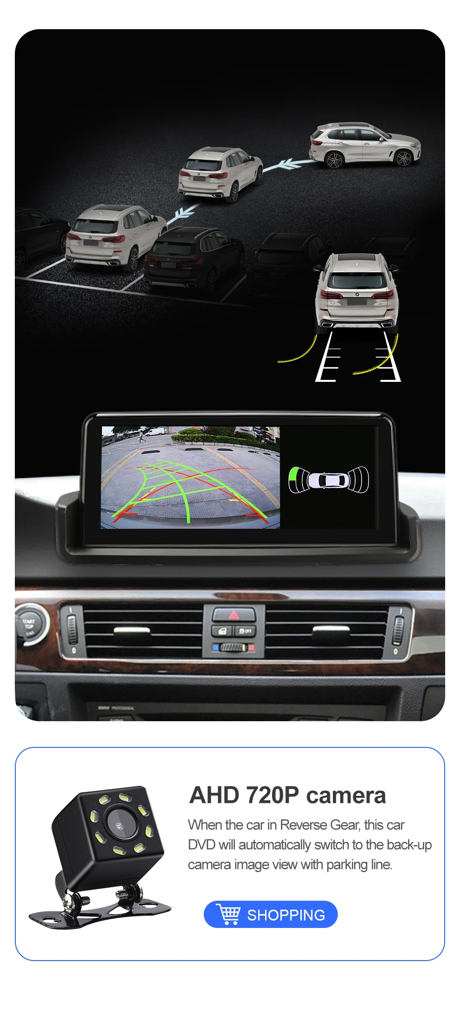 >>> Это головное устройство может автоматически поддерживать автомобильную камеру 360 / вторичного рынка и заводские датчики парковки на экране при включении задней передачи. Это поможет вам сосредоточиться на заднем движении и парковке автомобиля.универсальная камера - подарок для вас в комплекте.примечание: радио 1920X720P может поддерживать AHD камеру 1080P 25fps