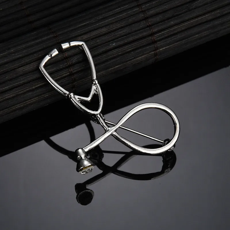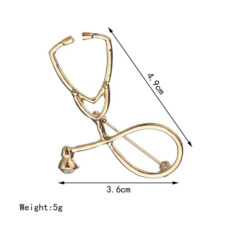 Брошь на булавке для воротника, золотистаяСеребристая брошь в форме медсестры, медицинское ювелирное изделие, брошь в виде стетоскопа