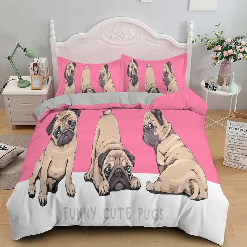 3D милая собака пододеяльник набор постельных принадлежностей Мопс король королева кровать одеяло
