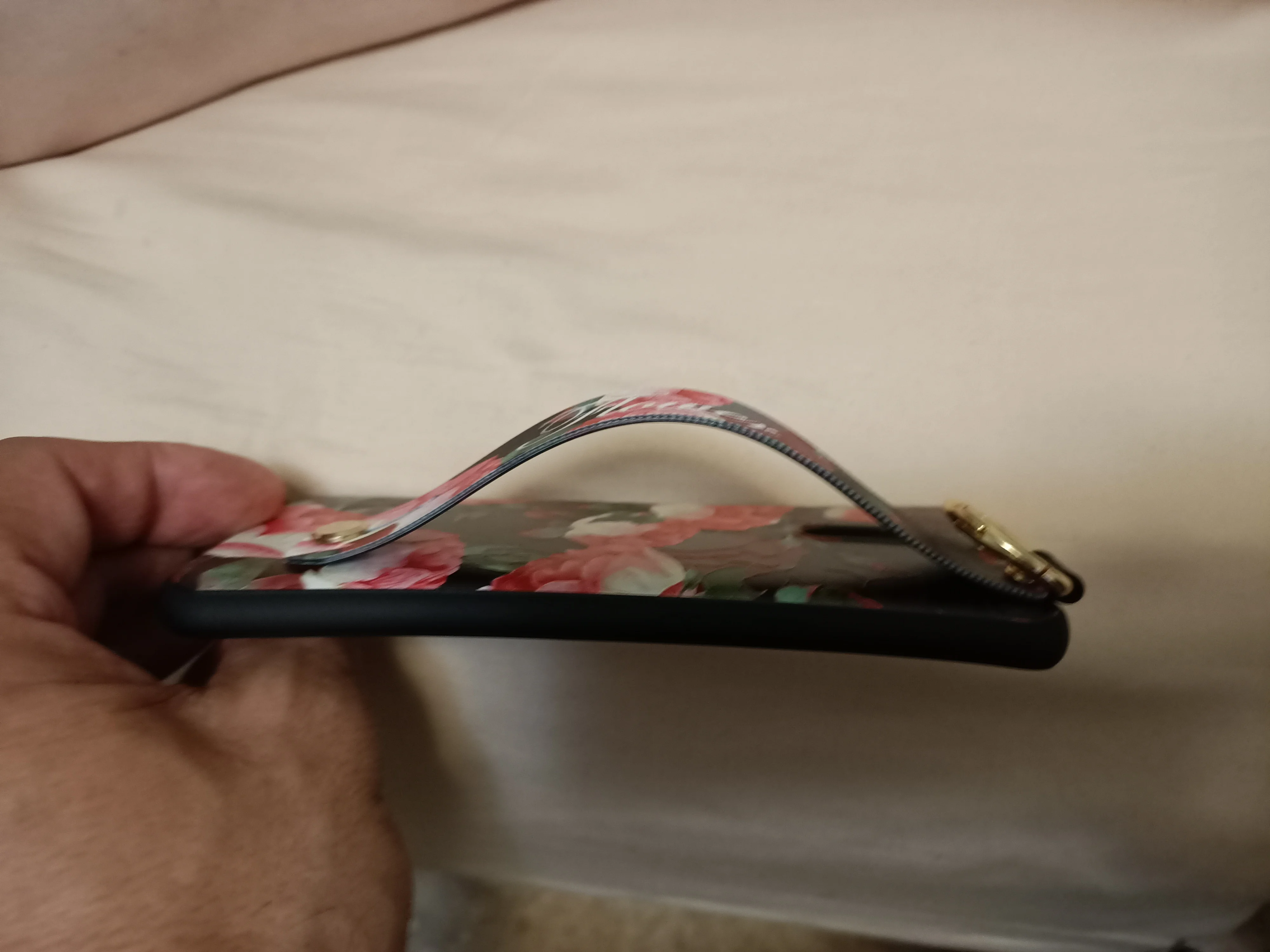 Ооочень понравился чехол, материал на ощупь приятный. Колечко-карабин, можно отстегнуть, если оно не нужно. Ремешок удобный, легко "открывается" без усилий. Он не пришит и не приклеен, а пробито к чехлу зажимами, очень надёжно, точно не отвалится! По размерам идеально все подошло, мм в мм, без "щелей". Идеально для перфекционистов)