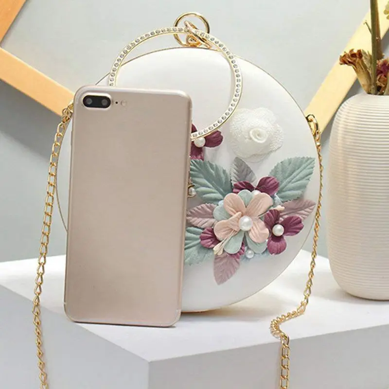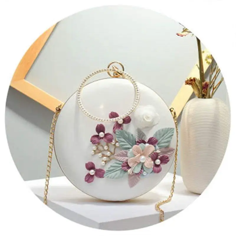 Круглые вечерние сумки для банкета с замком на застежке, женские клатчи на каждый день, Дамская свадебная сумочка, сумка-тоут с объемным цветком