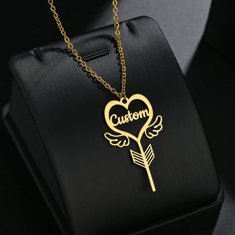 Ожерелье с именем на заказ, подвеска из нержавеющей стали с сердцем...