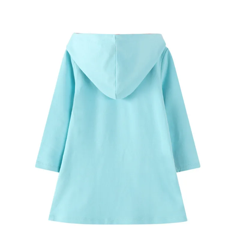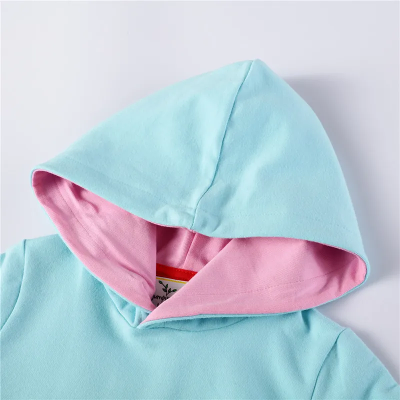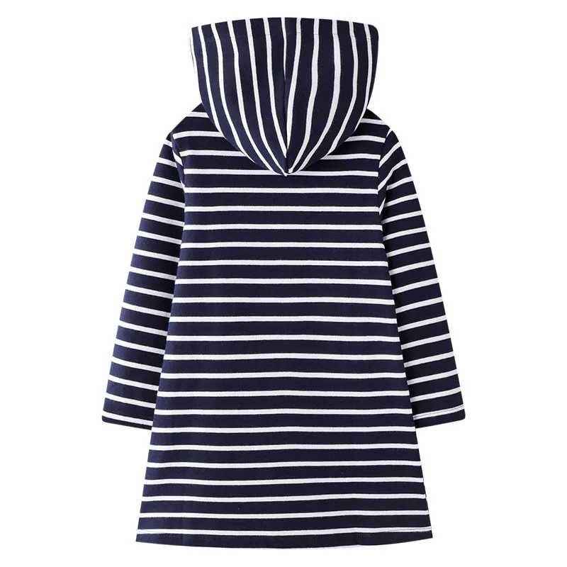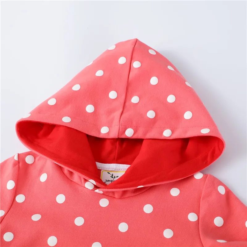 Jumping Meters2021 детская хлопковая одежда на осень и зиму, платье с капюшоном для девочек, повседневное платье в горошек с длинными рукавами и вышивкой для девочек