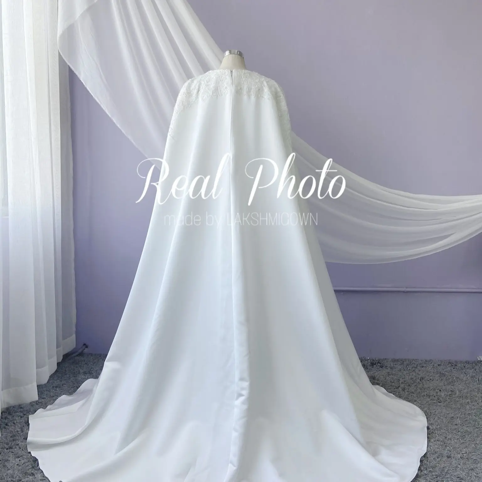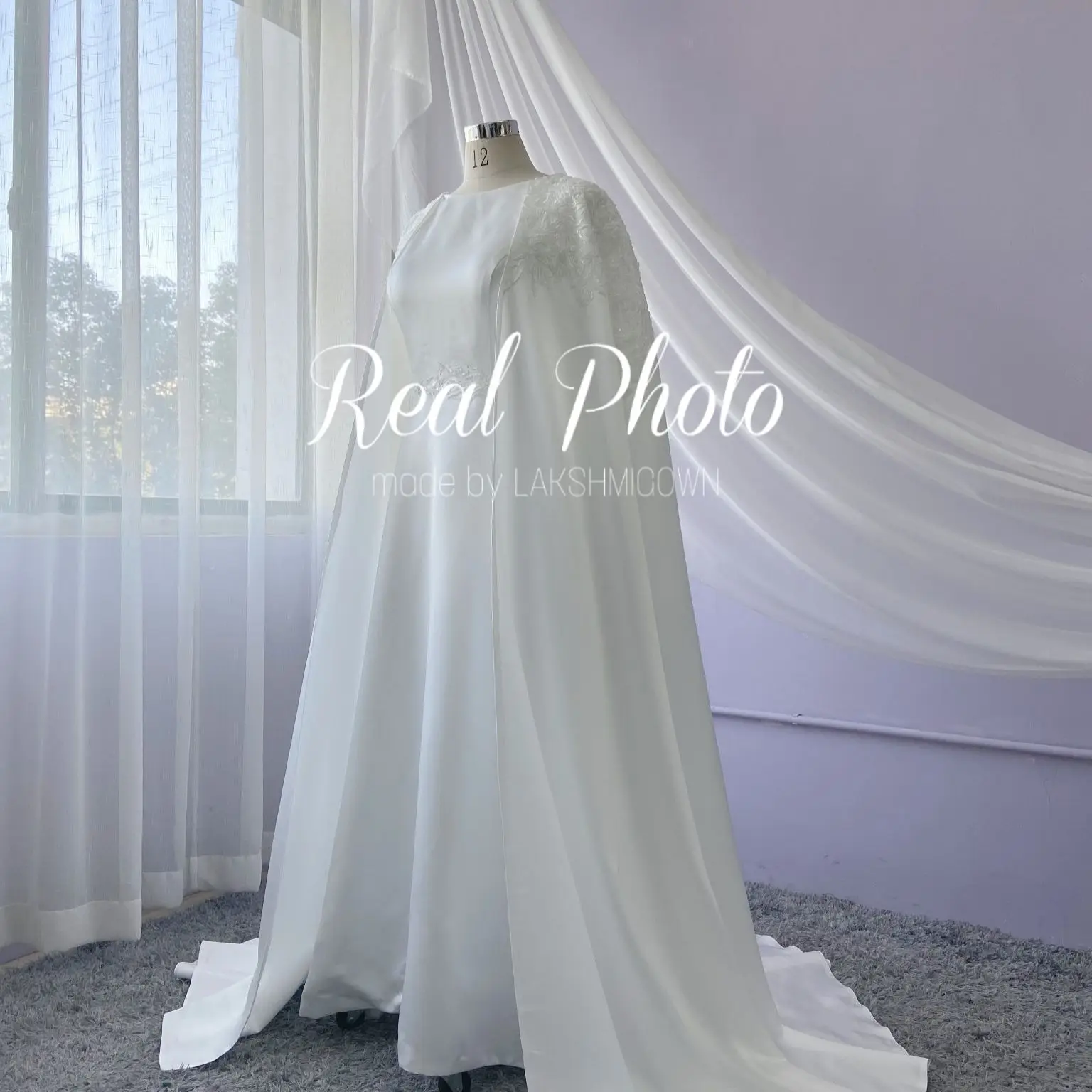 Мусульманское свадебное платье с накидкой, а-силуэт, с длинным рука...