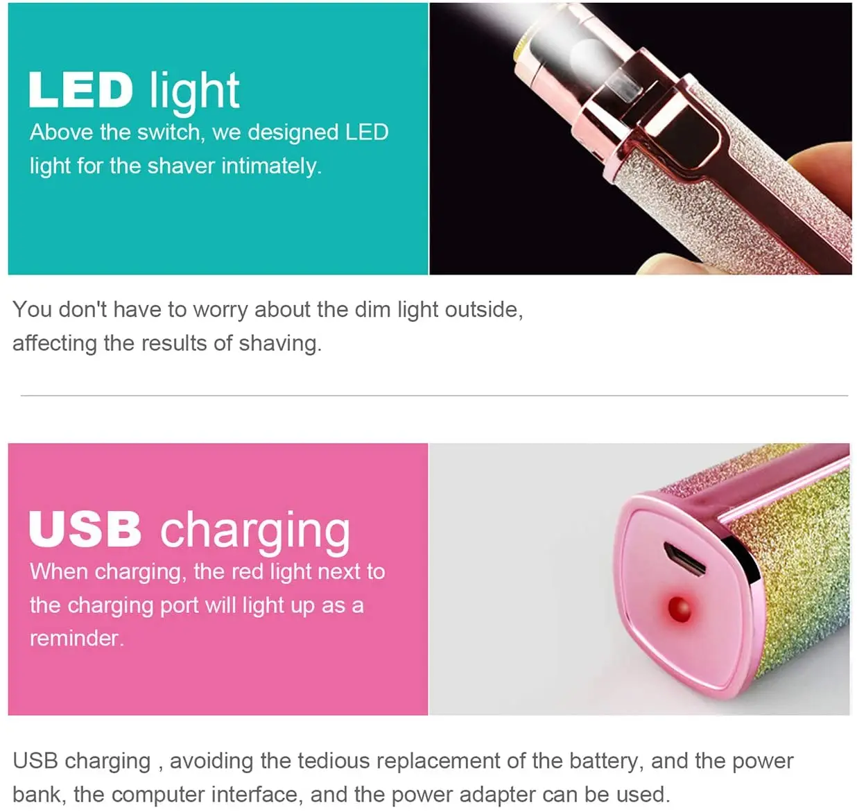 ❤【Удаление волос на лице для женщин 】этот набор для удаления волос состоит из 2 типов головок, для удаления волос на лице и триммера для бровей. Бритвенная головка разного типа используется для различных частей тела, предназначена для носа, ушей, лобковых волос, ног, зоны бикини, подмышек, тела, лица и т. Д. Удаляет все нежелательные тонкие волосы. Хорошие идеи, как Рождественский сюрприз, подарок на день рождения, праздничный подарок, свадебный подарок и т. Д.❤【Триммер для бровей с противоаллергическим материалом 】 безопасный, безболезненный, гипоаллергенный. 18K позолоченный головки являются нежные для всех типов кожи. Идеально подходит для бритья, близкого к вашей коже, не вызывая вытягивания, повреждения, покраснения или раздражения. Этот триммер для бровей является идеальной заменой традиционного воска и пинцетов. Больше нет боли от воска и выщипывания.❤【Бритва для бровей со встроенным светодиодным освещением 】эффективная и отличная обрезка. Эта Бритва для бровей имеет встроенный свет, который позволяет легко видеть и целить самые маленькие области, чтобы побрить крошечный персиковый пух. Его можно точно наносить на верхнюю губу, щеку, подбородок, волосы в носу, брови в ушах или в любом месте, мгновенно захватывает диапазон 360 градусов и легко стирает нежелательные и сбивающиеся Волосы на лице.❤【USB перезаряжаемая и портативная машинка для удаления волос на лице 】этот инструмент для удаления волос на лице разработан с функцией USB перезаряжаемой функцией позволяет использовать его в любом месте и в любое время. Кроме того, это средство для удаления волос с размером помады, стильным внешним видом и эргономичным ощущением можно легко поместить в косметичку, носить с собой и обрезать в любое время. Дизайн с одной кнопкой идеален и удобен для ежедневного использования.❤【Водонепроницаемый и легко Очищаемый эпилятор. Этот Корпус для удаления волос является водонепроницаемым и защищенным от брызг. Две режущие головки легко снимаются и очищаются проточной водой и поддерживаются с помощью прилагаемой щетки. Но Не погружайте Эпилятор в воду в течение длительного времени для обеспечения длительного использования. Кроме того, мы поддерживаем 1 месяц бесплатной замены или возврата денег, не стесняйтесь связаться с нами по любым вопросам.