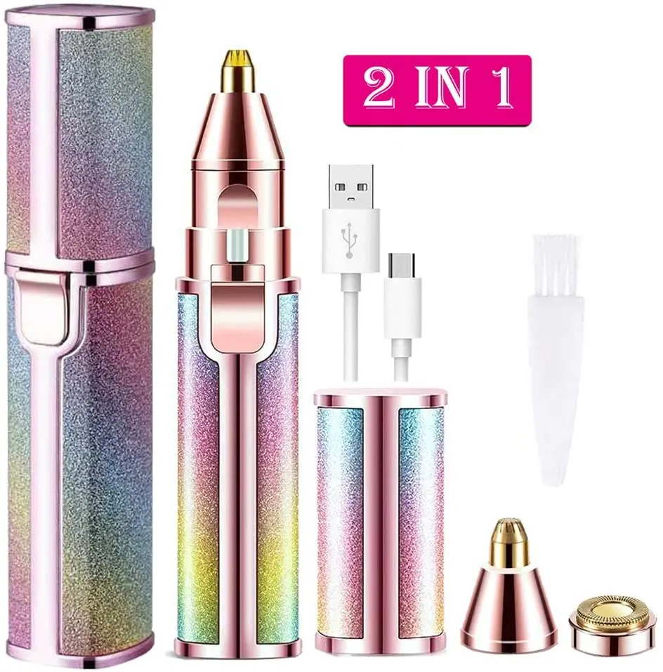 Триммер для бровей и удаление волос на лице со светодиодной подсветкой, 2 в 1 Бритва для бровей и безболезненное удаление волос, портативное средство для удаления волос на лице