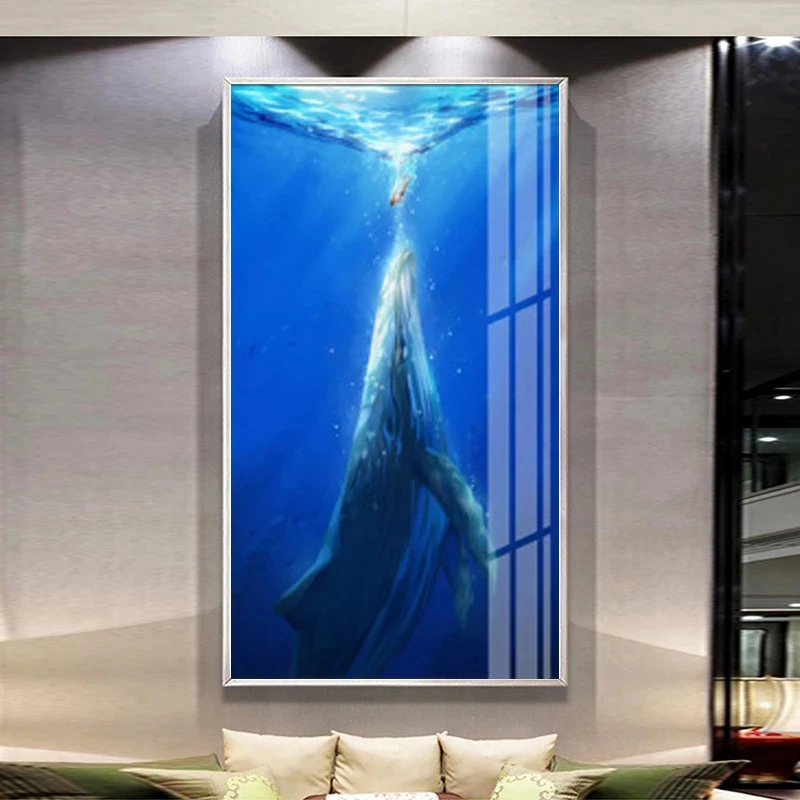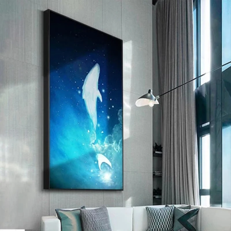Декоративная картина в скандинавском стиле, Большая Современная Настенная картина в виде абстрактного Кита, синего цвета для спальни, гостиной