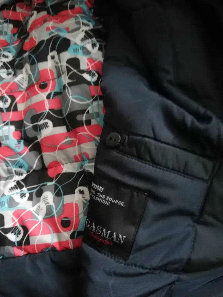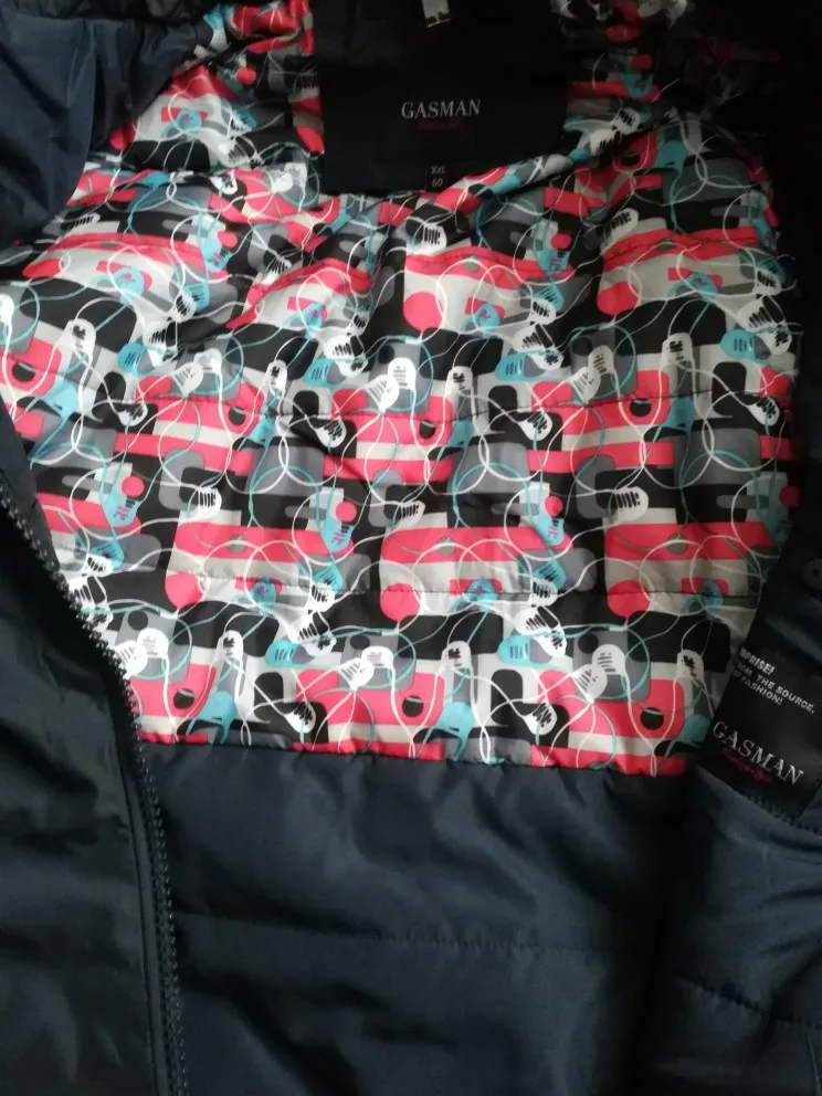 классная куртка на осень /весну . за неделю в Мск . пришла в вакуумном пакете (плоская как фанера), открыла и сразу куртка как куртка . супер . очень довольна на 88.75 100 заказала L на рост 157 плечи 38 чуть длинные рукава,но не критично . есть петелька чтобы вешать , внутри 1 карман , вытачки на груди, шея закрыта. надпись не Gasman,но мне это для меня не принципиально