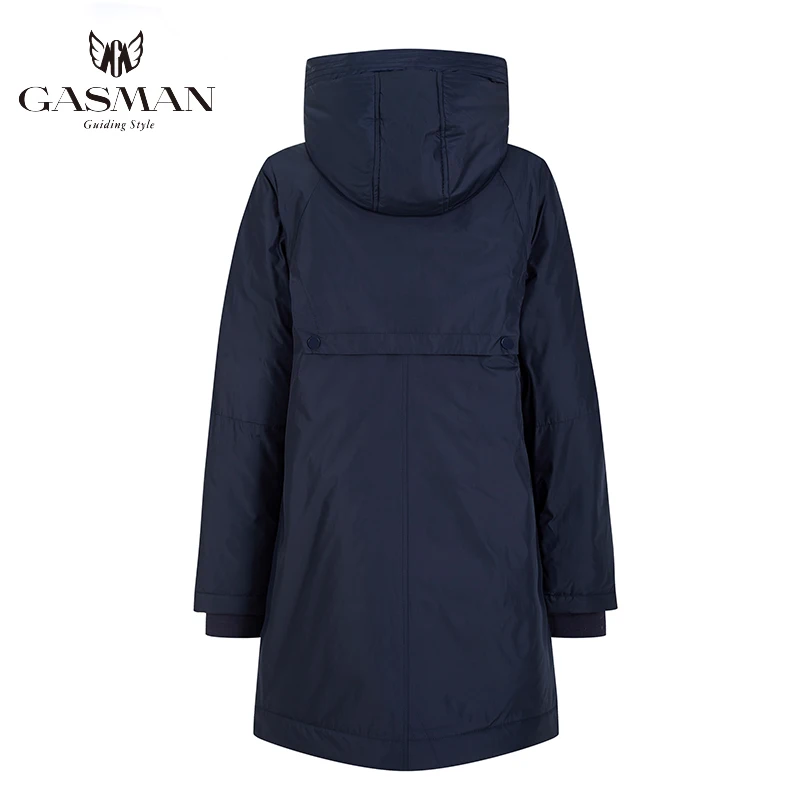GASMAN Модная брендовая синяя теплая Осенняя Женская куртка длинная куртка с капюшоном для женщин пальто однотонная Хлопковая женская ветрозащитная пуховая парка