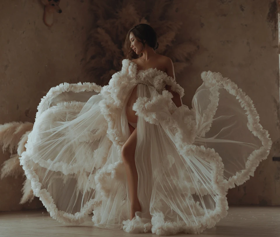 Высококачественный красивый тюлевый халат для беременных для фотосъ...