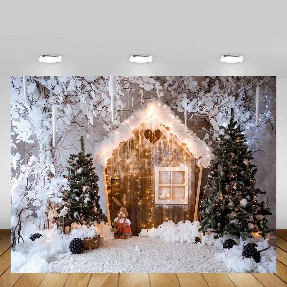 Фоны для фотосъемки Снежная сцена дом Рождественские украшения вини...