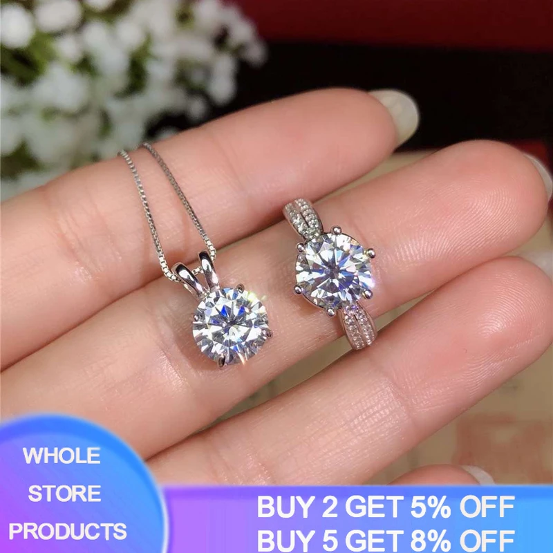 100% Оригинальный 925 чистого серебра ювелирные изделия кольцо комплект роскошные 2 карат кулон ожерелье кольцо наборы свадебных ювелирных изделий невесты набор украшений для женщин подарок