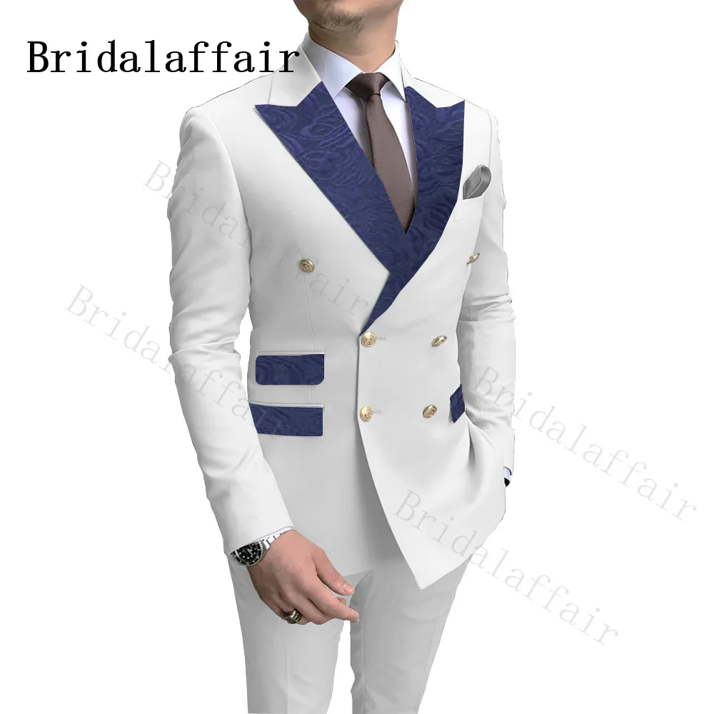 Двубортные костюмы для жениха Bridalaffair, белые, тонкие, черные костюмы для жениха с пейсли-лацканами и золотыми пуговицами, Мужские костюмы (пиджак + брюки)