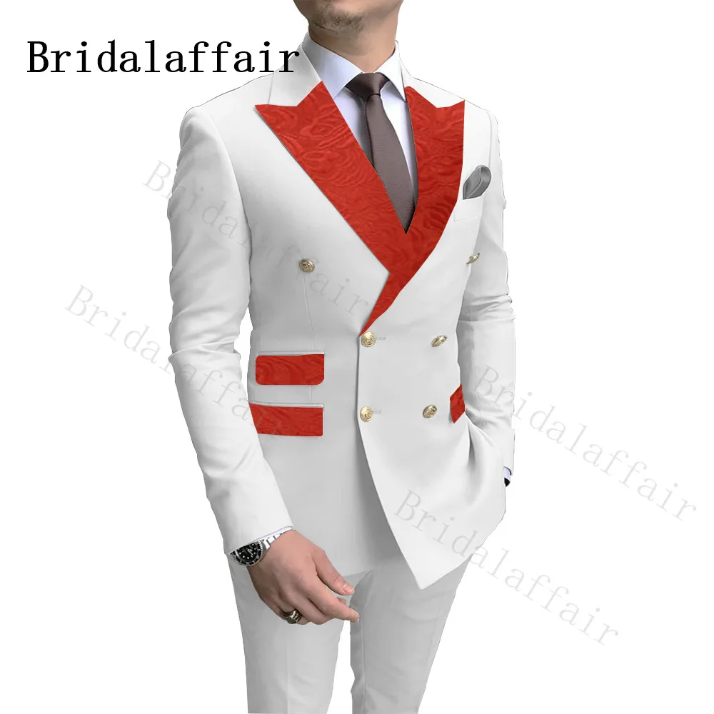 Мужской двубортный костюм Bridalaffair, белый блейзер с красным узором пейсли, с отворотами, с кольцом для мальчиков, смокинг для свадебной вечеринки