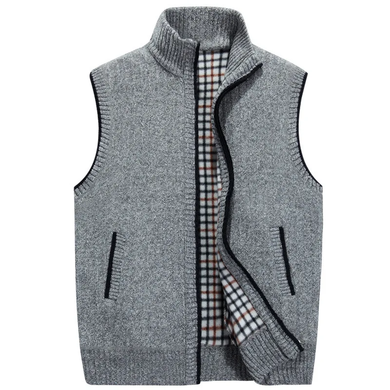 Мужской утепленный свитер, жилет, теплая куртка без рукавов, вязаный жилет на молнии, верхняя одежда, осень-зима