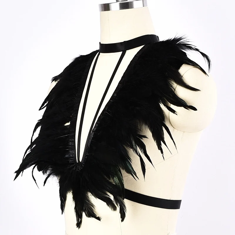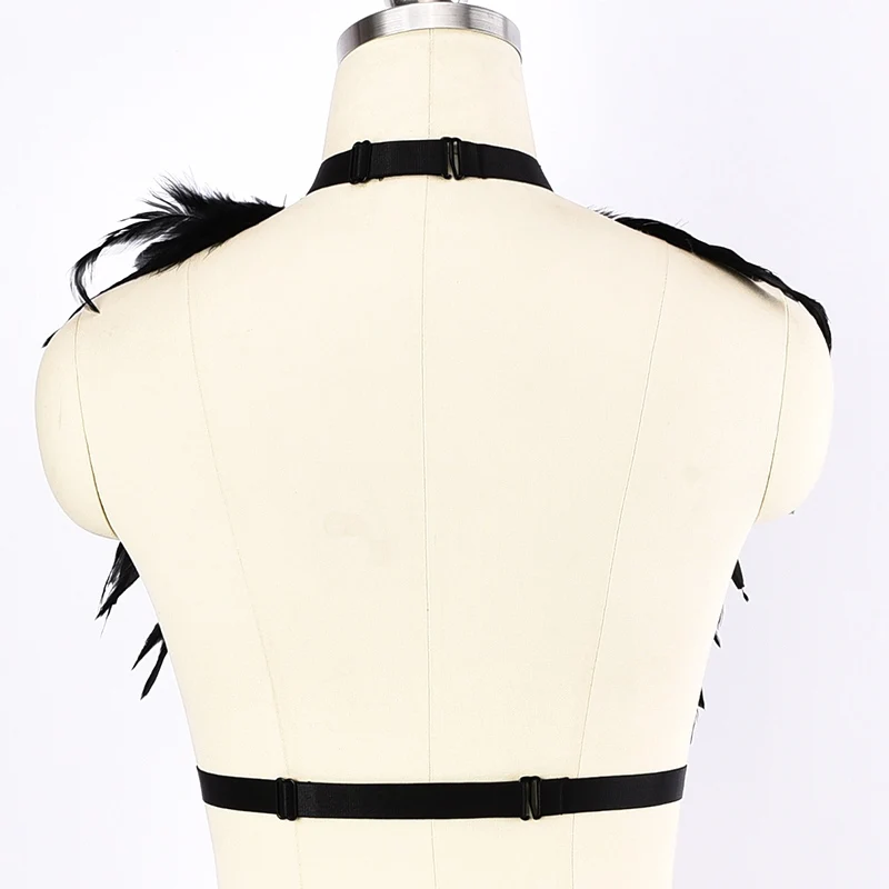 Оптовая продажа, портупея для тела, пояс, шаль с перьями, сексуальный бюстгальтер, фетиш, бондаж, женское белье, боди-клетка, Готическая клетка, бюстгальтер с перьями