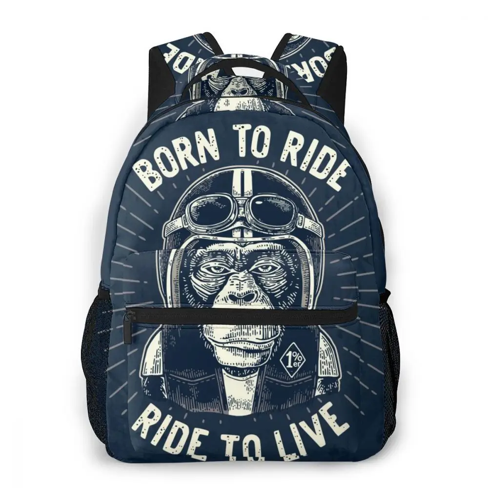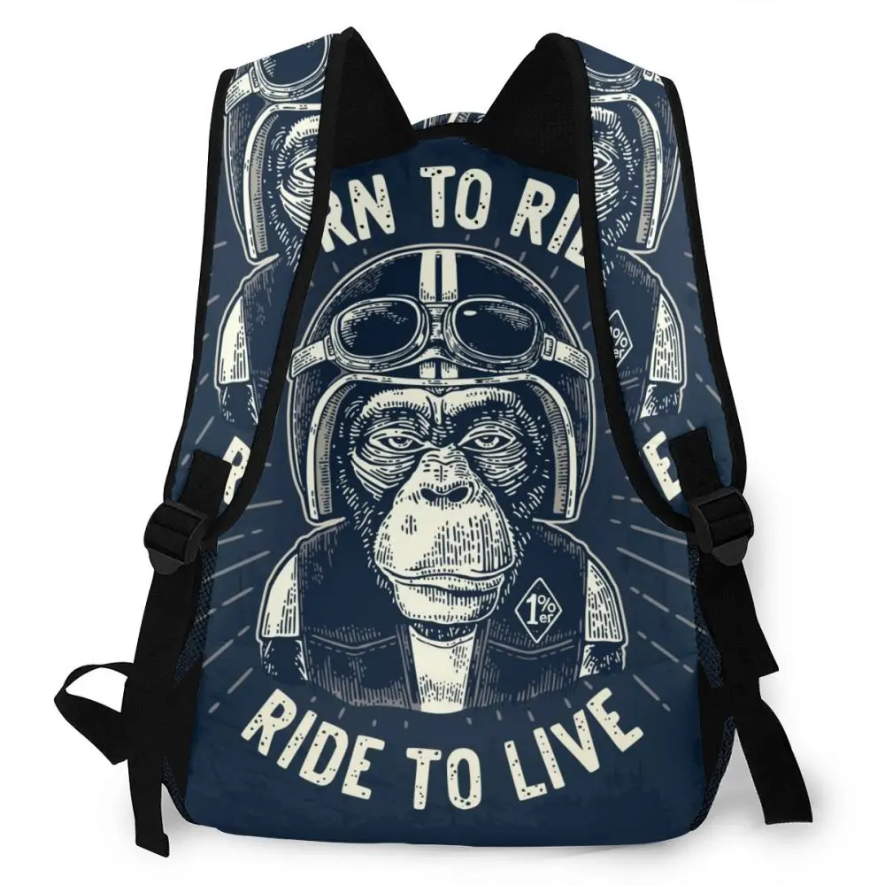 Альпинистский рюкзак в байкерском стиле с обезьяной, мотоциклетный шлем, жилет и очки, сумки через плечо, рюкзаки