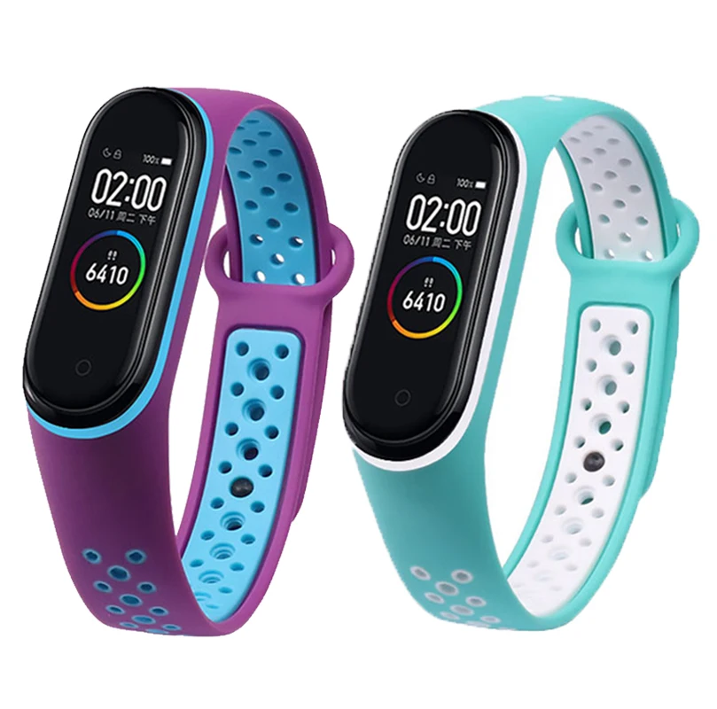 Дышащий ремешок для Xiaomi Mi Band 4 5 3 6, двухцветный спортивный ...