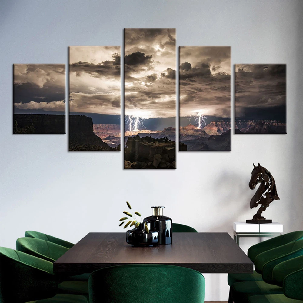 Холст, молния, облака, пейзаж, плакаты, HD печать, 5 панелей, дикие природные картины, настенная живопись для гостиной, домашний декор