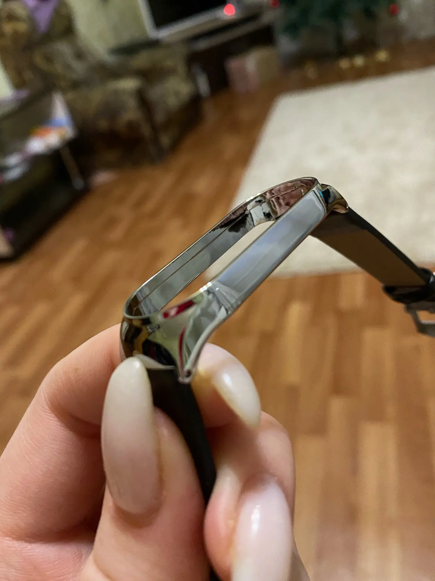 Ремешок отличный, приятный на ощупь, металлическая блестящая оправа и хорошая упаковка. Рекомендую продавца! Доставка заняла 1,5 месяца в Киев