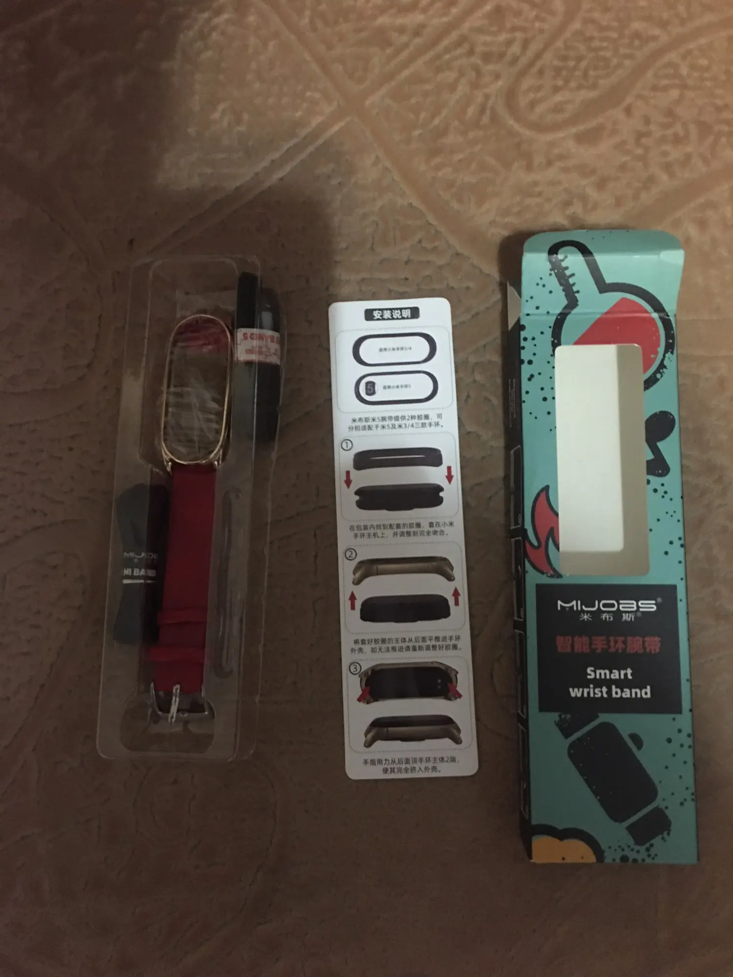 Браслет симпатичный. Ремешок на кожу не очень похож, он как картонный. Посмотрим как носиться будет. В комплекте резиночки уплотнительные, фишка mijoas, 2 набора: для ми бэнд 3,4 и для ми бэнд 5. Пришёл быстро, недели 2 в Ленинградскую область!!