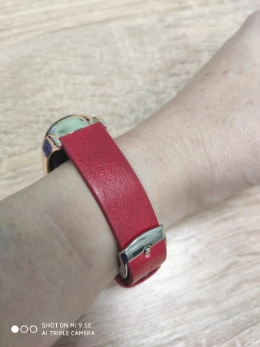 ремешок красивый, смотрится на руке очень стильно. приехал в Москву очень быстро! за 12 дней! прям супер! кожзам, но нормальный. упакован в коробочке вместе с резинками и инструкцией. все понятно как что и куда. ну т.е. чтобы вставить в ремешок, нужно надеть специальную резиночку. оооочень тугую и плотную резиночку) но вот снять потом эту резиночку с капсулы оказалось проблематично. вряд-ли куплю что то подобное еще раз, тк установка и переодевание ремешка занимает слишком много времени.