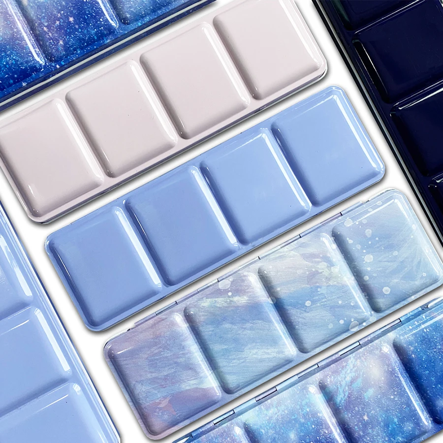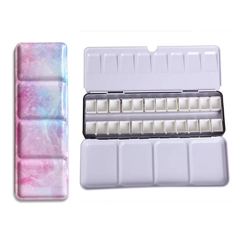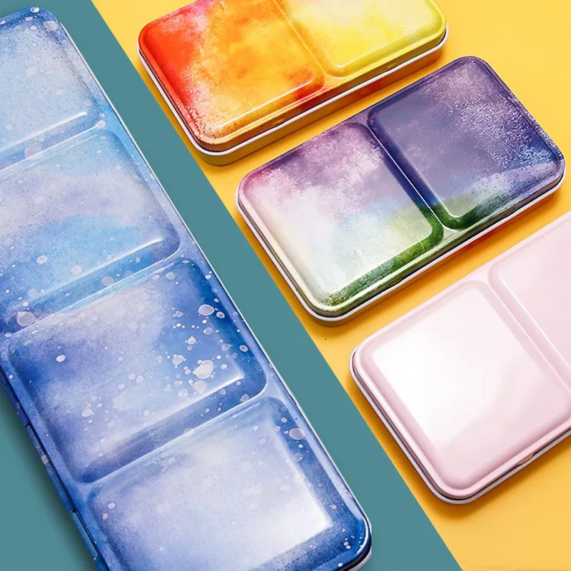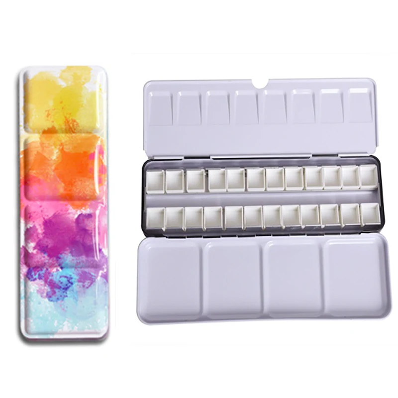 Переливающиеся акварельные краски, гуашь, жестяная коробка, лоток, палитра с полусковородками для художественных занятий и студентов