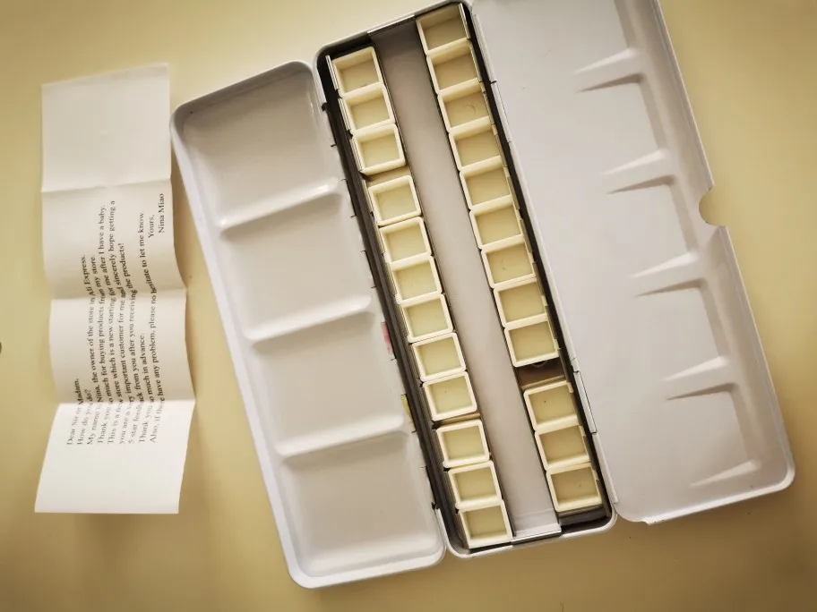 [PT] Adorei! Qualidade melhor do que eu esperava, entrega em apenas 2 semanas - bem antes do prazo mаximo. Veio muito bem embalado e com as 24 pastilhas vazias. Colorquei as minhas Winsor & Newton e couberam bem, com pouca folga. Cabe mais uma pastilha em cada linha se deixar justinho, sem problema. [EN] очень понравилось. Качество лучше, чем я ожидала, и доставка была очень быстрой (всего 2 недели от размещения заказа до прибытия на мой порог в Бразилию). Он хорошо обернут и с 24 пустыми половинками. Я могу легко подогнать себе половину кастрюль с помощью небольшой комнаты для очков. Если вы хотите, чтобы все они были плотно прижаты, не оставляя много места в рядах, вы можете поместить 26 полукастрюль (13 в каждом рядом).