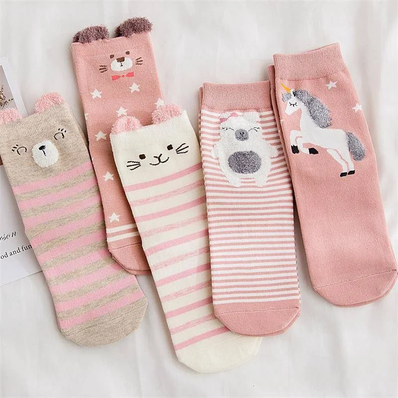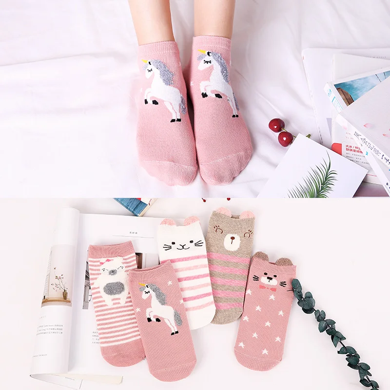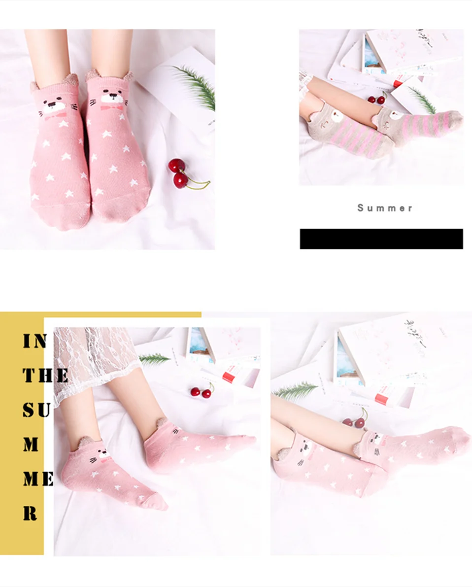 5 пар, новые носки для малышей милые носки женские набор Харадзюку с рисунками животных из мультфильмов, милые хлопковые носки, Meias, носочки для Kawaii Носки с оборками комплект женские Size34-40