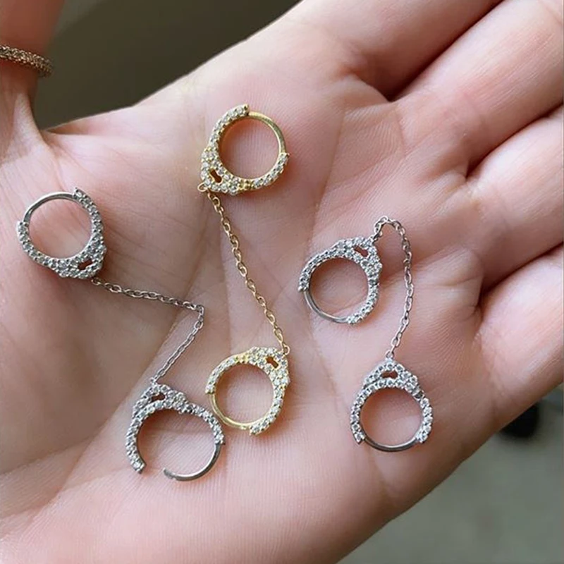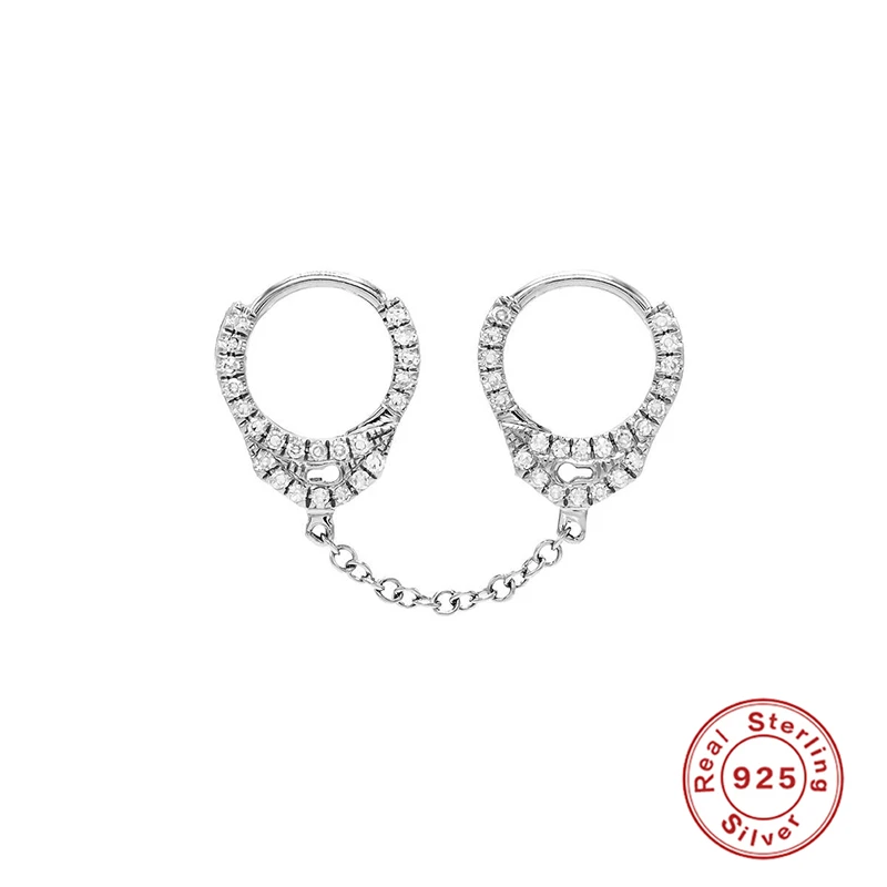 Женские серьги-кольца из серебра 925 пробы, с наручниками