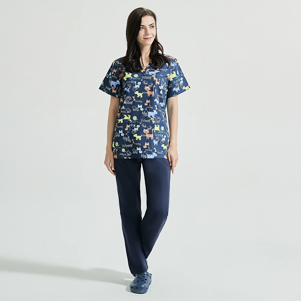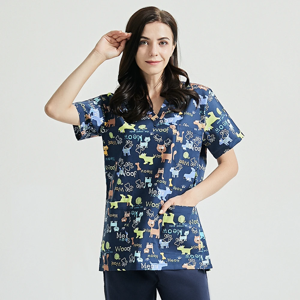 Scrubs tops Cute Cartoon printing Kindergarten teacher workwear pet...