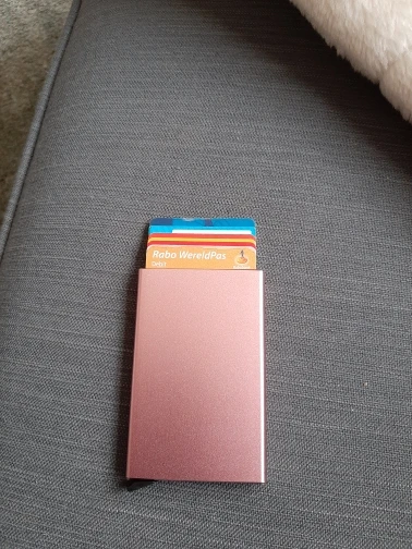 Удобный, компактный, недорогой, в отличие от многих других (например, кожаных) , кардхолдер. 4-5 карт помещаются.