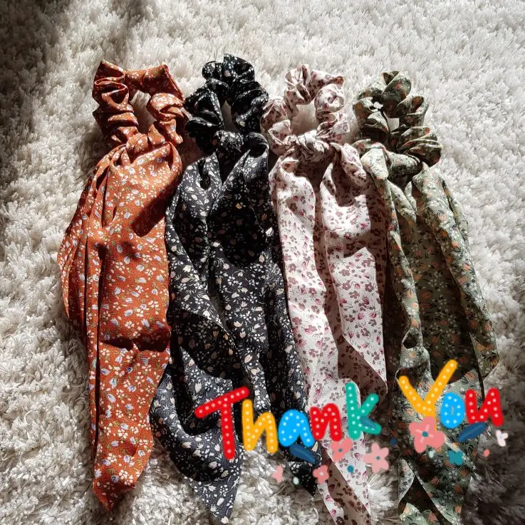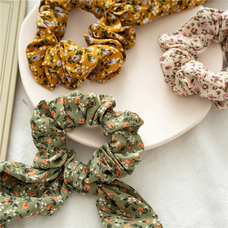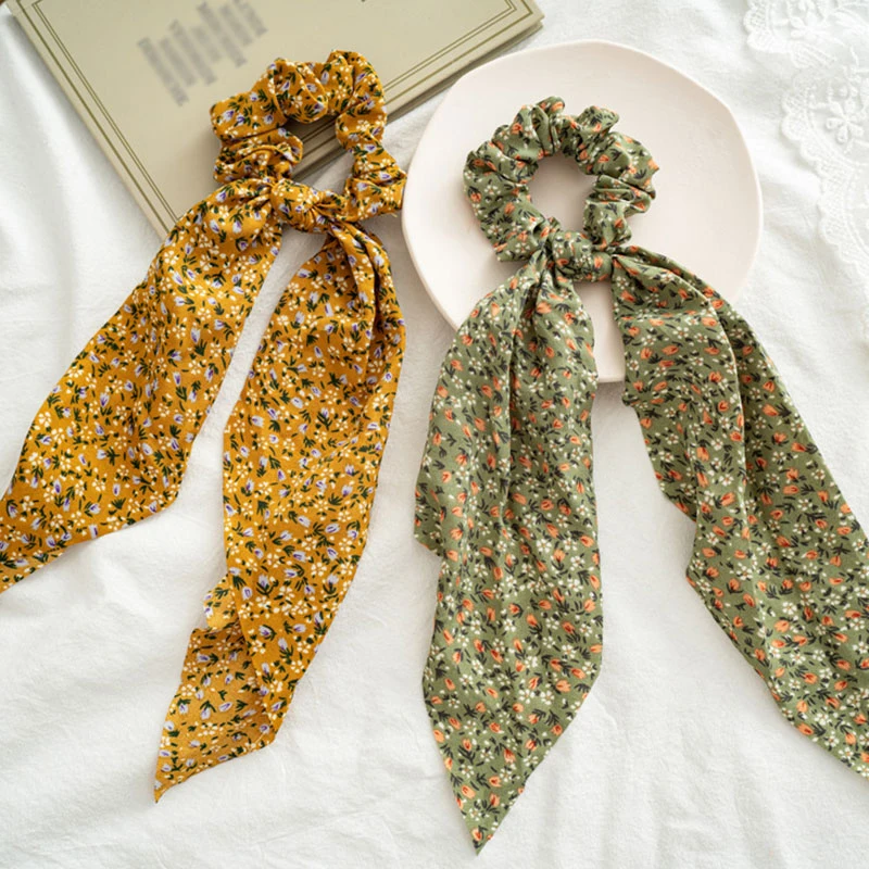 Резинки для волос женские длинные эластичные, с цветочным принтом