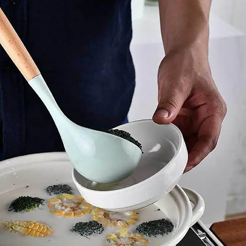1 шт., Силиконовая Термостойкая кухонная утварь с деревянной ручкой