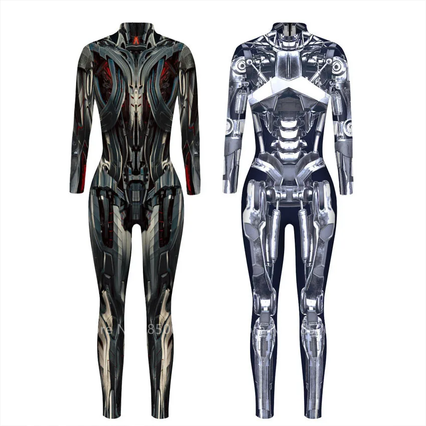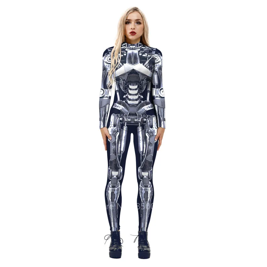 Футуристический костюм для косплея на Хэллоуин для женщин и мужчин, вечернее боди с 3D принтом робота, механический комбинезон, карнавальный комбинезон
