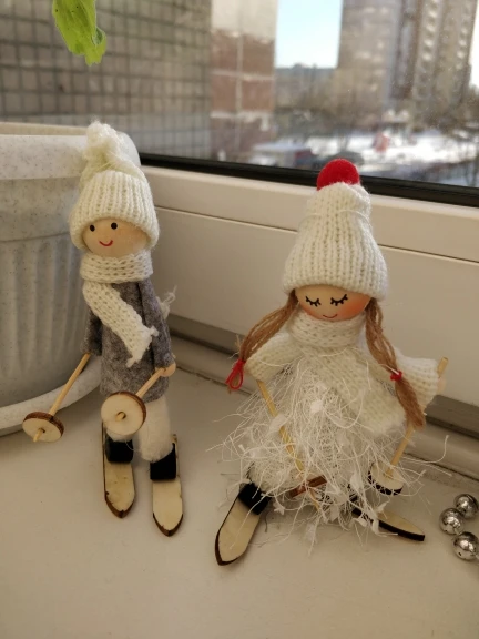 прекрасные ангелочки, у одного была отклеяна лыжа, но все решилось с помощью клея, покупкой очень довольна
