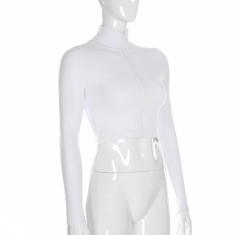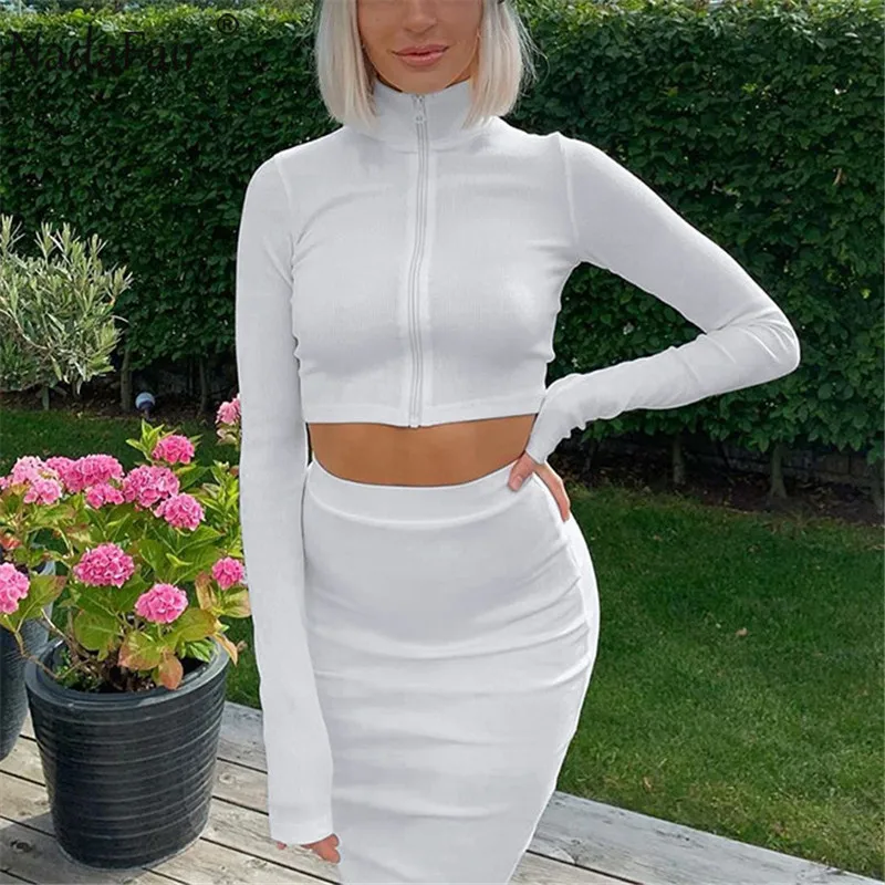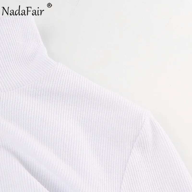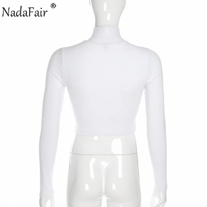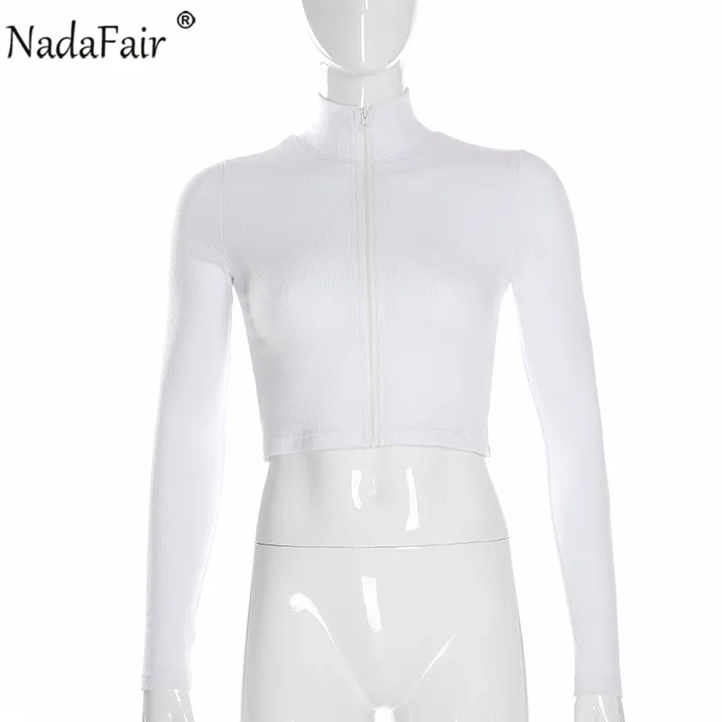 Женский Укороченный трикотажный пуловер Nadafair, белый, черный облегающий укороченный топ на молнии, базовый пуловер для клуба на осень