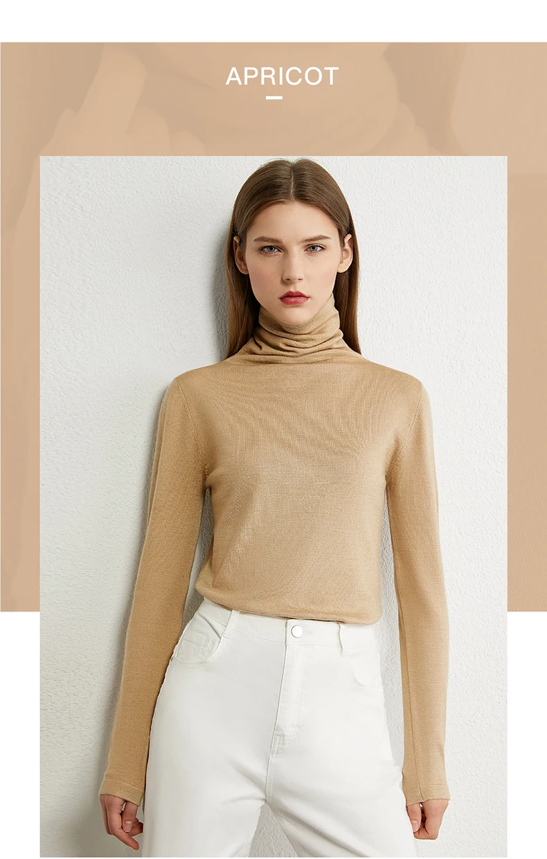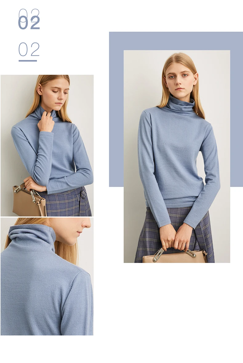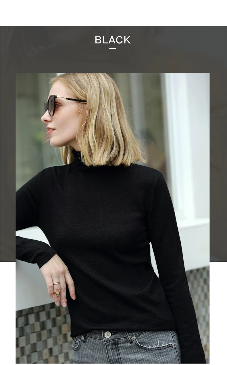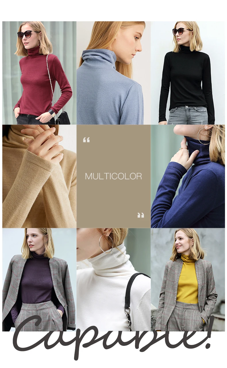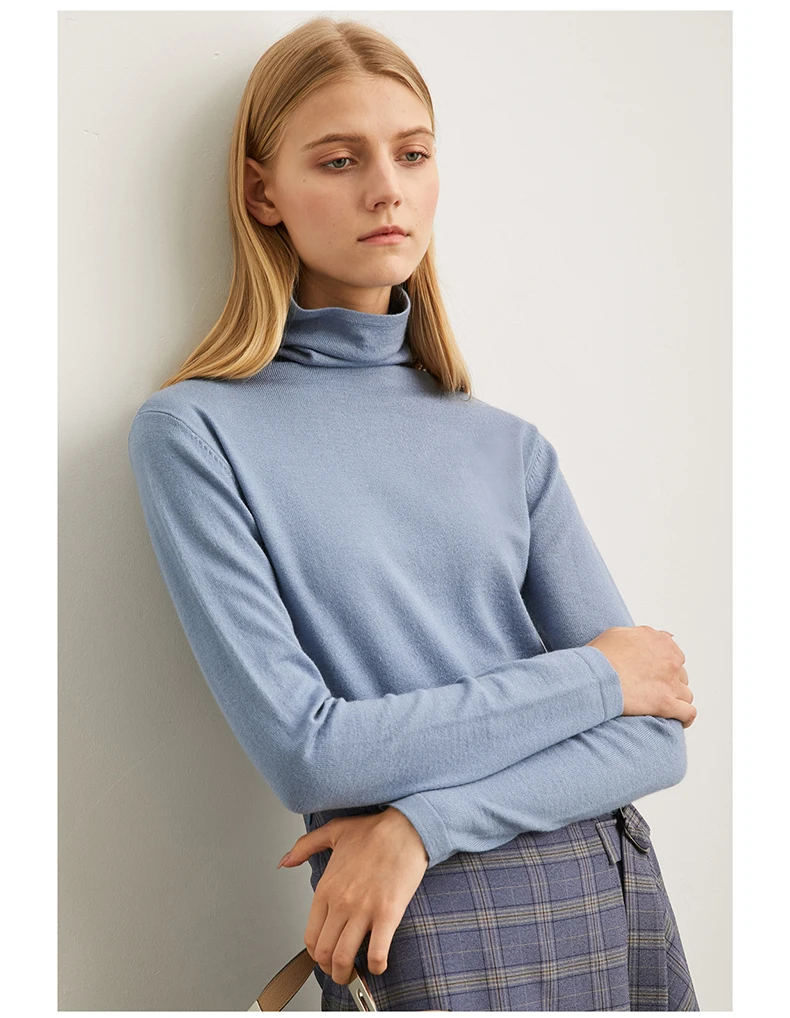 Свитер женский осенне-зимний однотонный с высоким воротом, 12020216