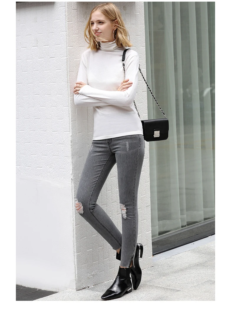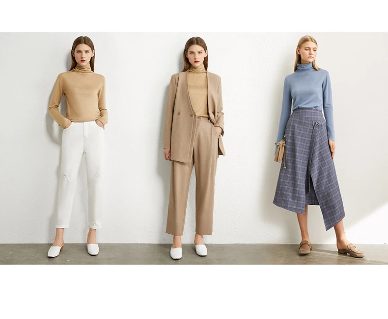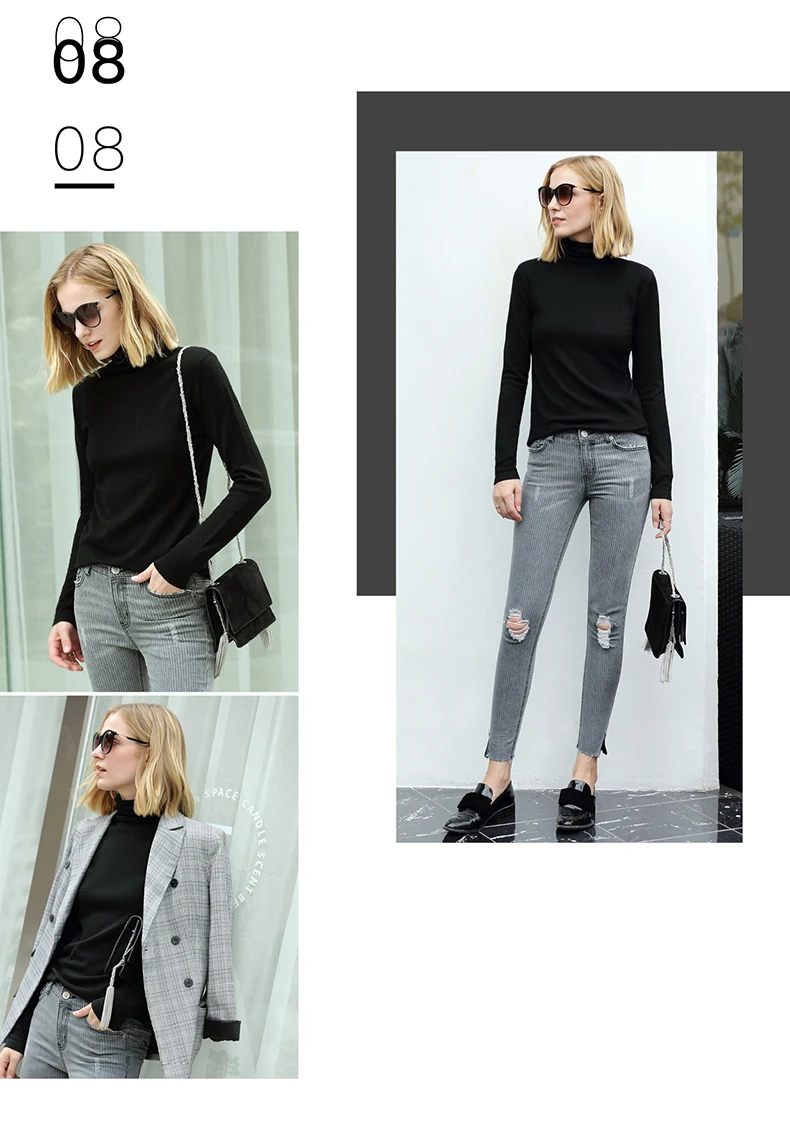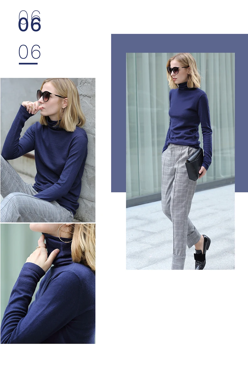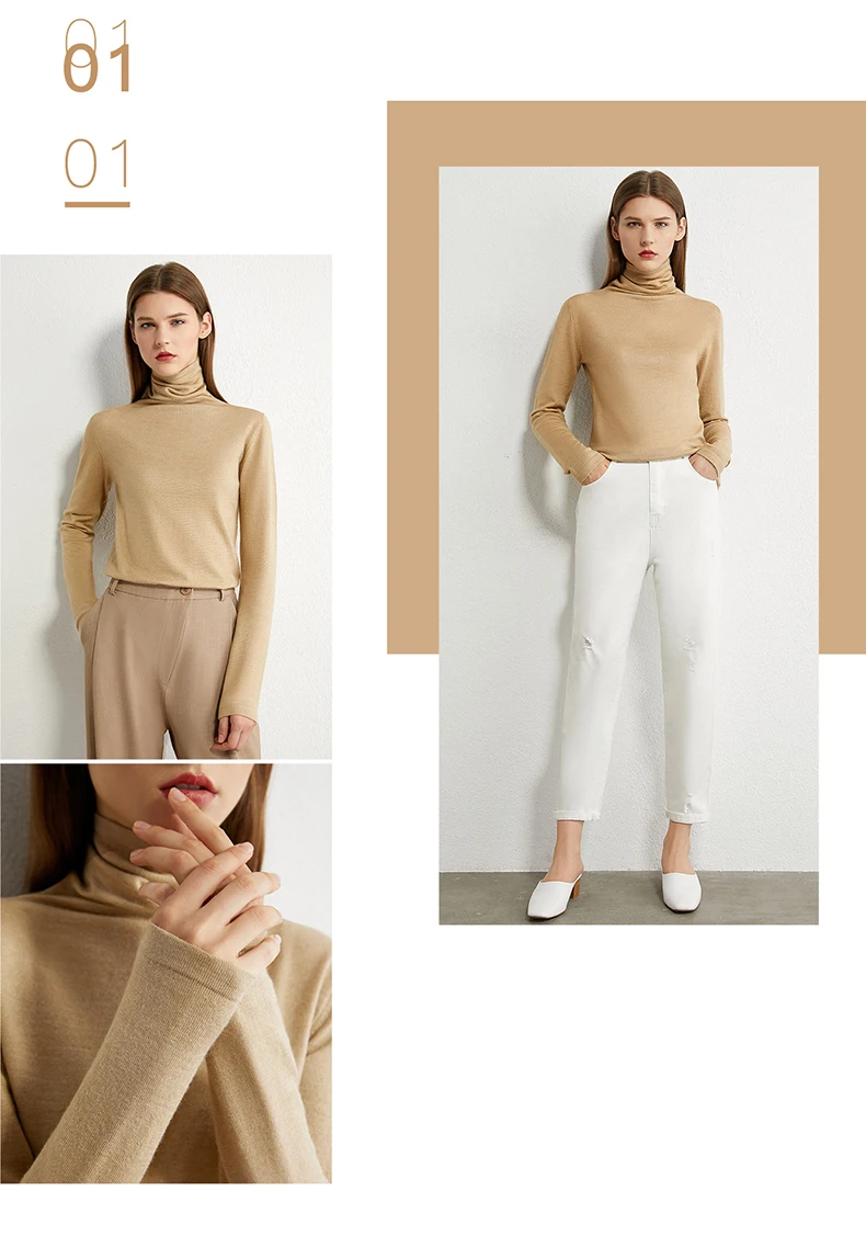 Свитер женский осенне-зимний однотонный с высоким воротом, 12020216