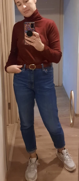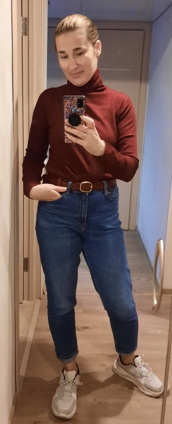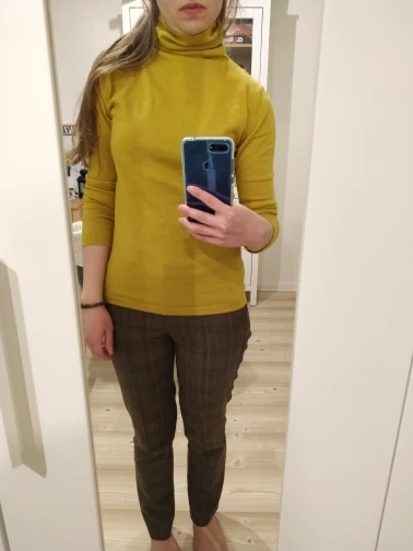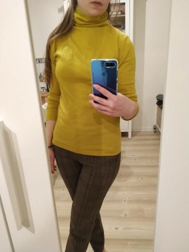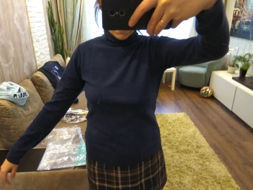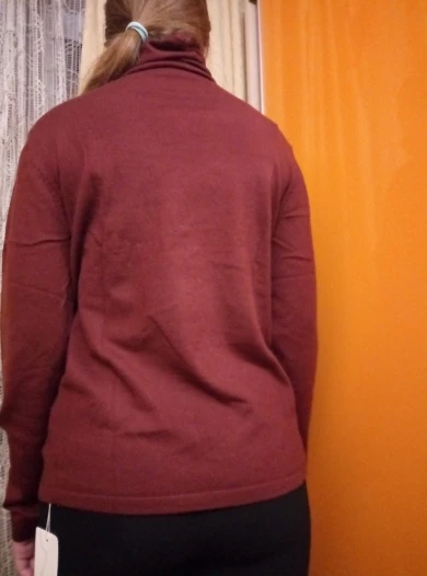 Водолазка понравилась. Очень красивый цвет. Боялась, что на 42 размер будет в обтяг (размера xl не было), но села немного свободно, как на модели. Хорошее качество, хороший состав.