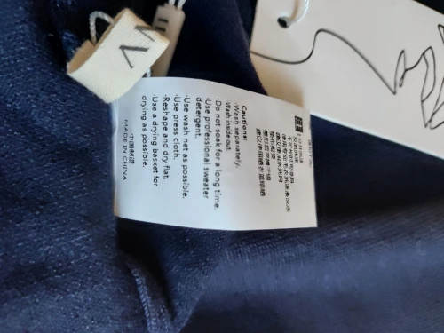 Одна из самых удачных покупок. На росс 42-44 взяла М - в принципе ок, но в след раз взяла бы на размер больше для более свободного силуэта. Рост 164 см - рукава норм. С бирками и в зиповском пакете (даже квитанция внутри). В составе точно есть шерсть - немного колется. Воротник нельзя подгибать (или только вовнутрь) - швы внутри.