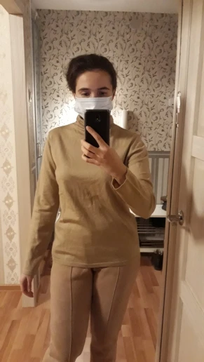 Уже третья водолазка. В этот раз купила, чтобы подарить маме на Новый год. Теплая, мягкая, немного колючая и приятного цвета. Доставка до Москвы быстрая.