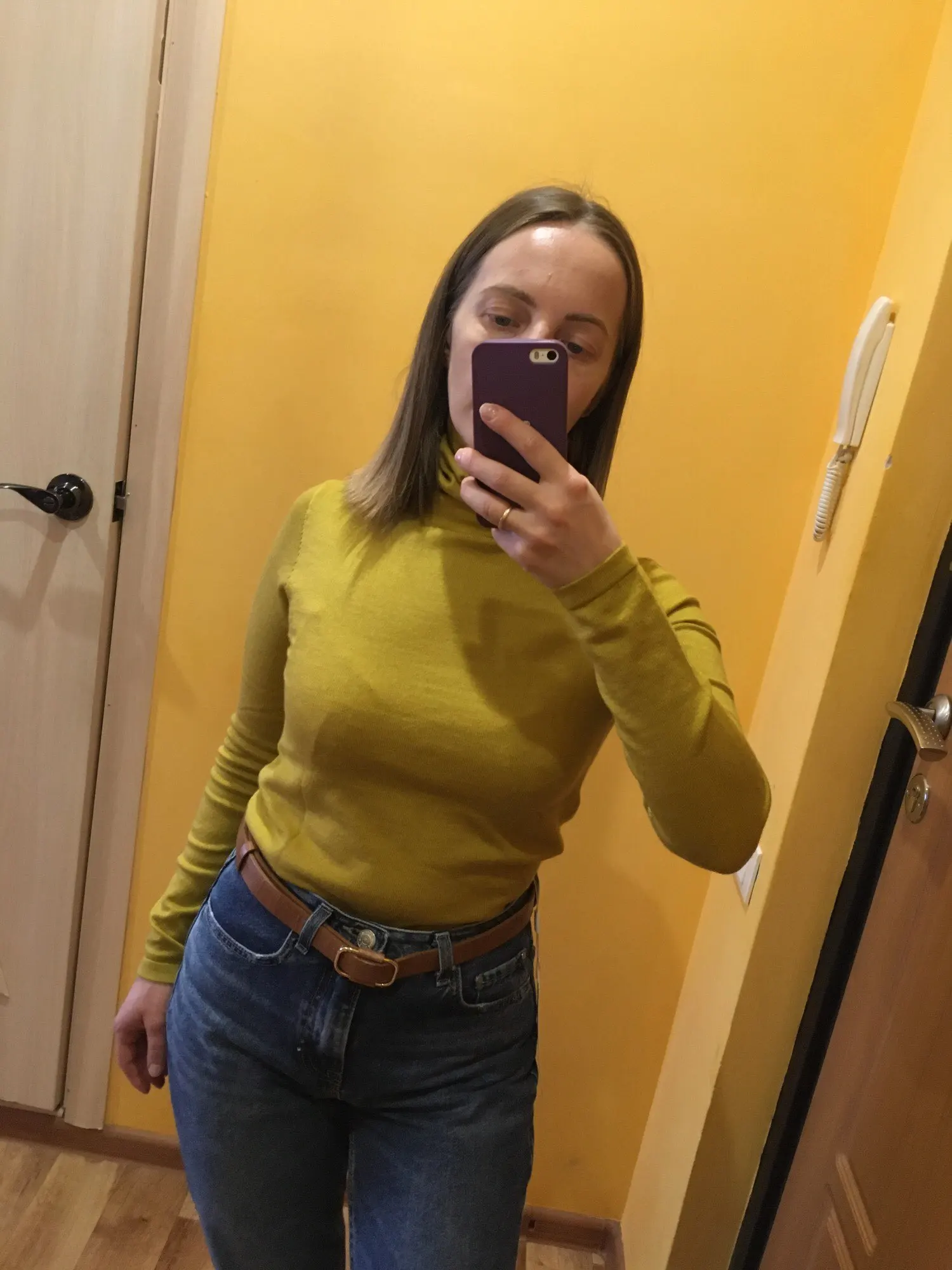 Водолазка наимягчайшая, как пузико у котёнка)) снимать вообще не хочется! На свой 44 размер брала L, отлично села - не сильно обтягивает, но и не висит. Цвет соответсвует картинке, красивый и глубокий. Огромное спасибо за рекомендацию Галины @_gravitsappa_