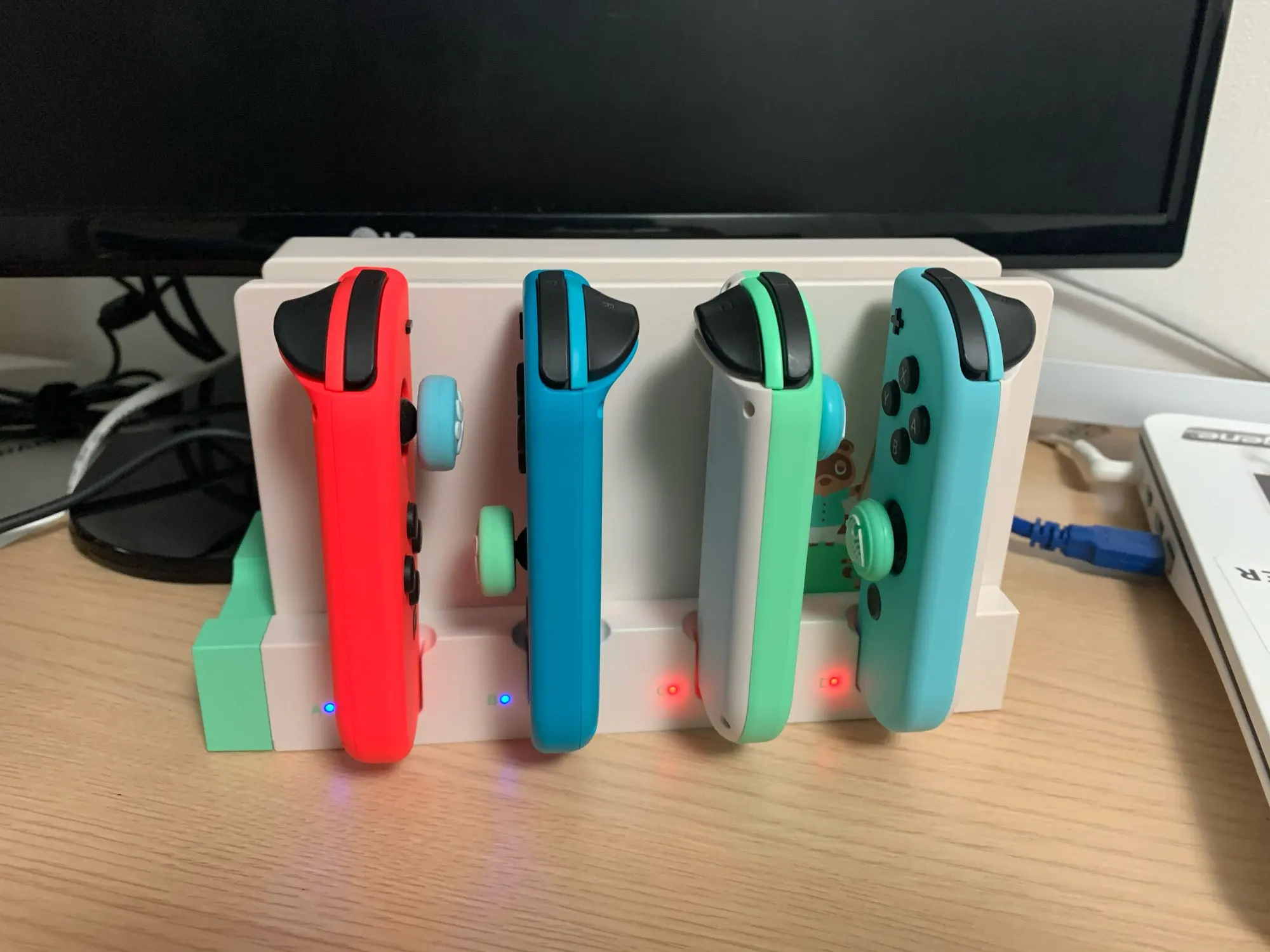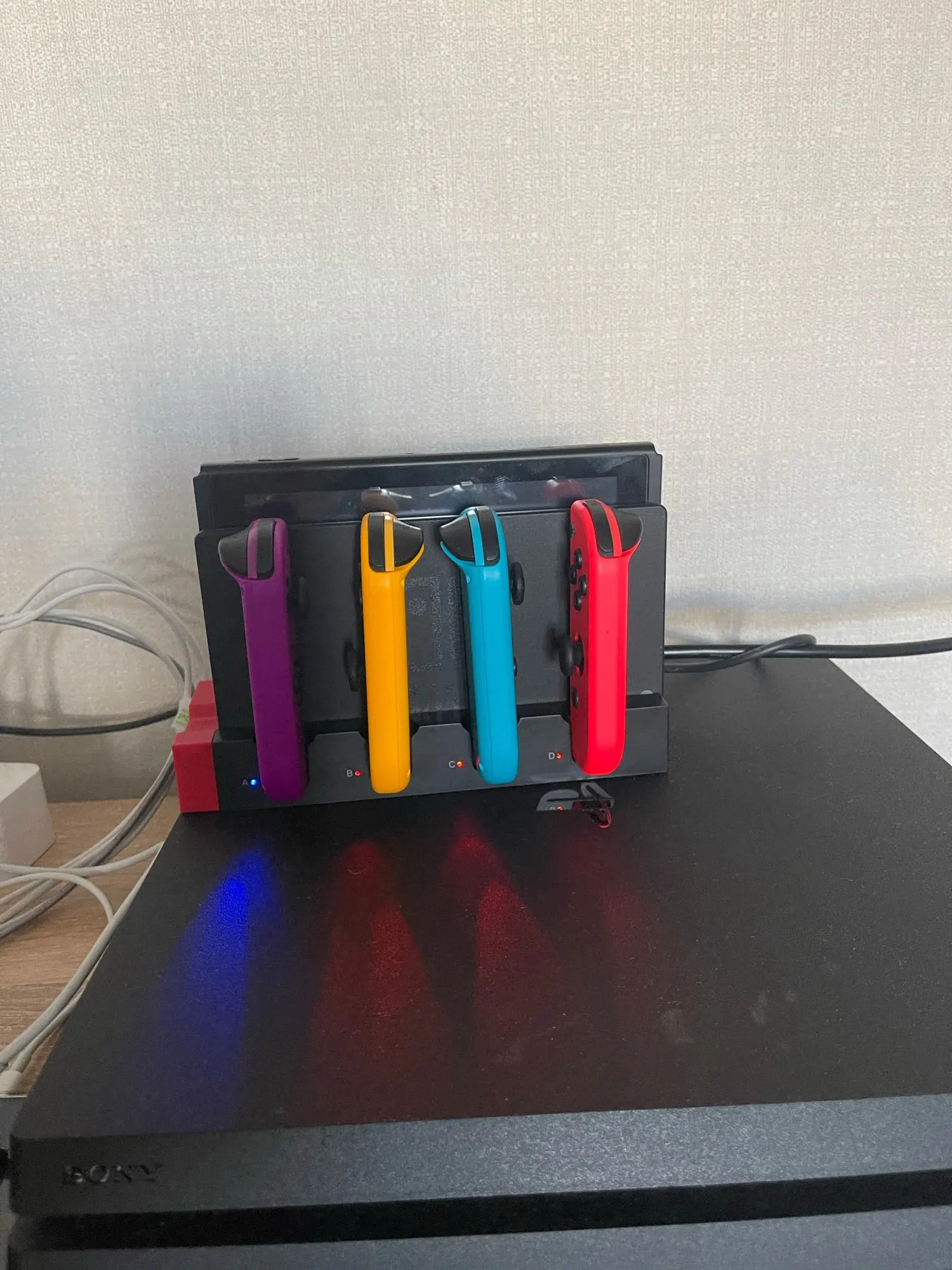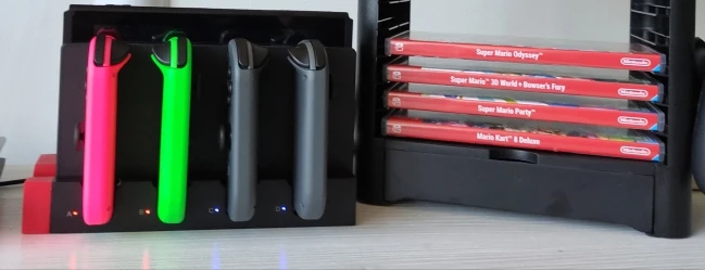 Удобное крепление. Хорошо заряжает и экономит место. Под каждым контроллером есть светодиодные лампы. Это хорошо, потому что это позволяет вам узнать, заряжены ли контроллеры против зарядки, но я хотел бы выключить их, когда они не используются, и я не могу понять, как это сделать. Вложение не оставляет места для большого ключа (например, 8 битдо) для подключения в прилегающем usb-порту.