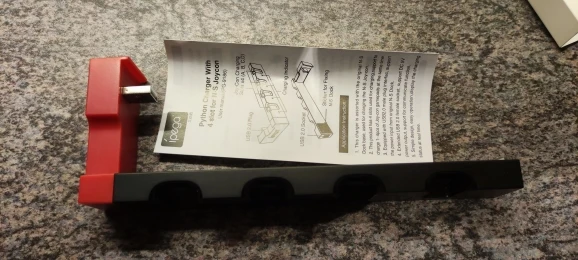 Недавно распакованный отзыв. Выглядит хорошо и плотно прилегает. Ощущение пластиковой поверхности отличается от оригинального держателя, но я не ожидал этого. Мощность 1А. Как вы можете видеть на картинке, Стандартный контроллер отлично подходит. Переключатель в стиле ретро. Возможно, инновация 2,0.